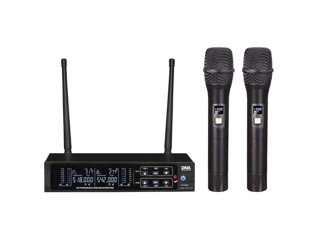 DNA STAGE VOCAL SET to wysokiej jakości bezprzewodowy system mikrofonowy oparty na technologii cyfrowej. Zestaw składa się z odbiornika UHF i dwóch mikrofonów. Idealnie nadaje się na koncerty i występy na żywo, imprezy, wesela, do klubów karaoke, a także do mobilnej pracy DJ-ów.