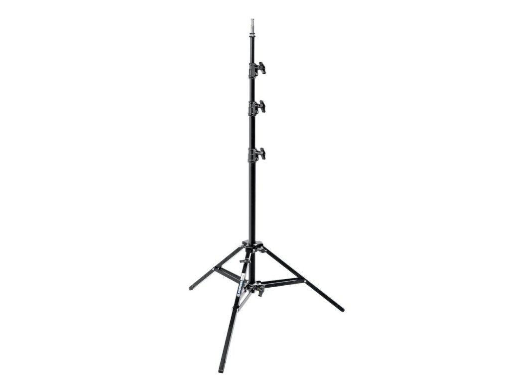 Jest to czarny aluminiowy statyw z 4 sekcjami. Statyw może unieść maksymalne obciążenie 10 kg i osiąga maksymalną wysokość 3 m. Statyw jest wyposażony w 1 poziomującą nóżkę ułatwiającą użytkowanie na nierównej powierzchni. Jest również wyposażony w górny wspornik o średnicy 5/8'' (16 mm).