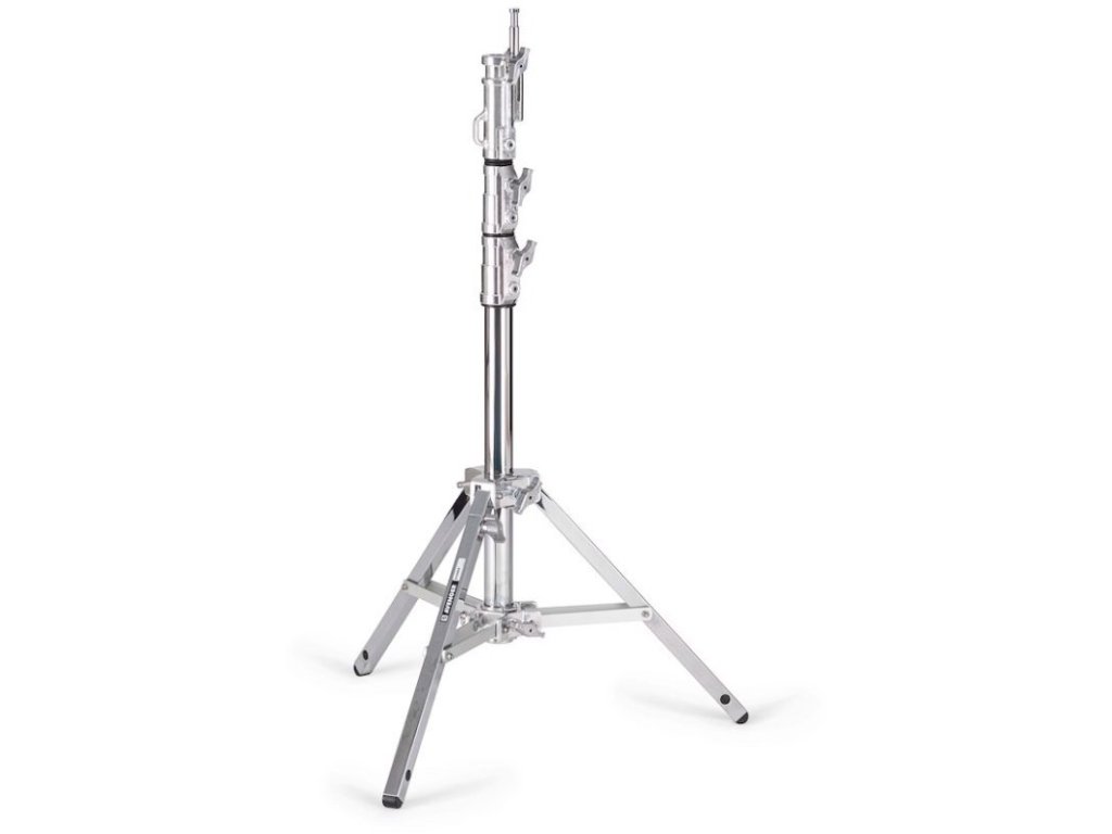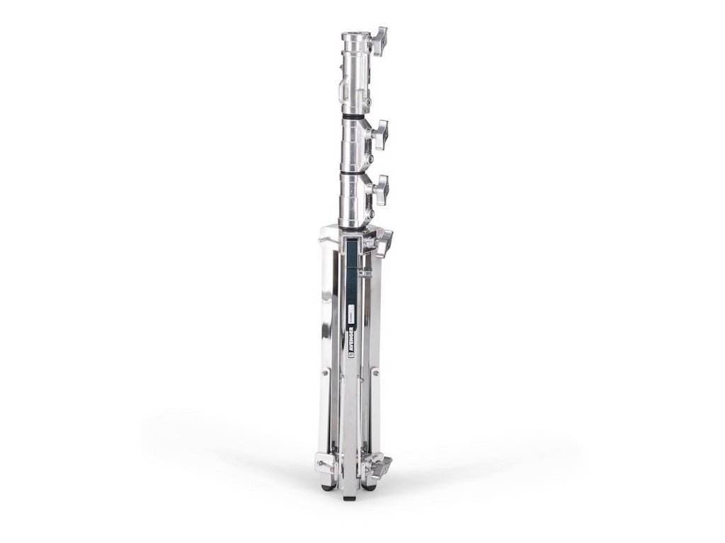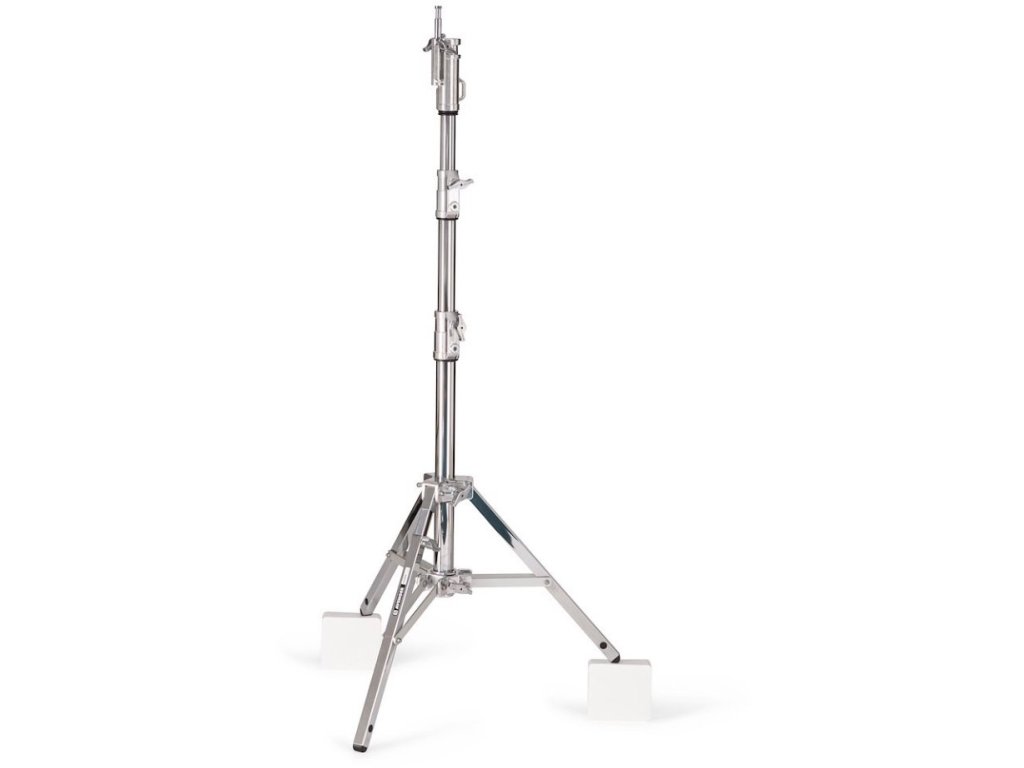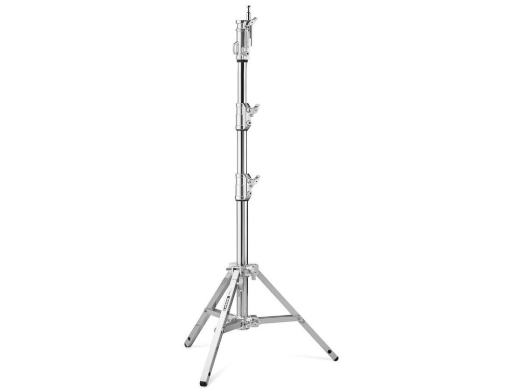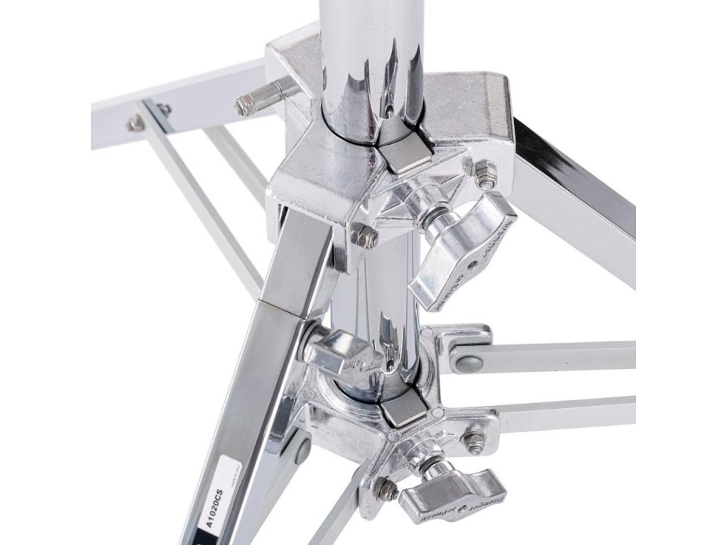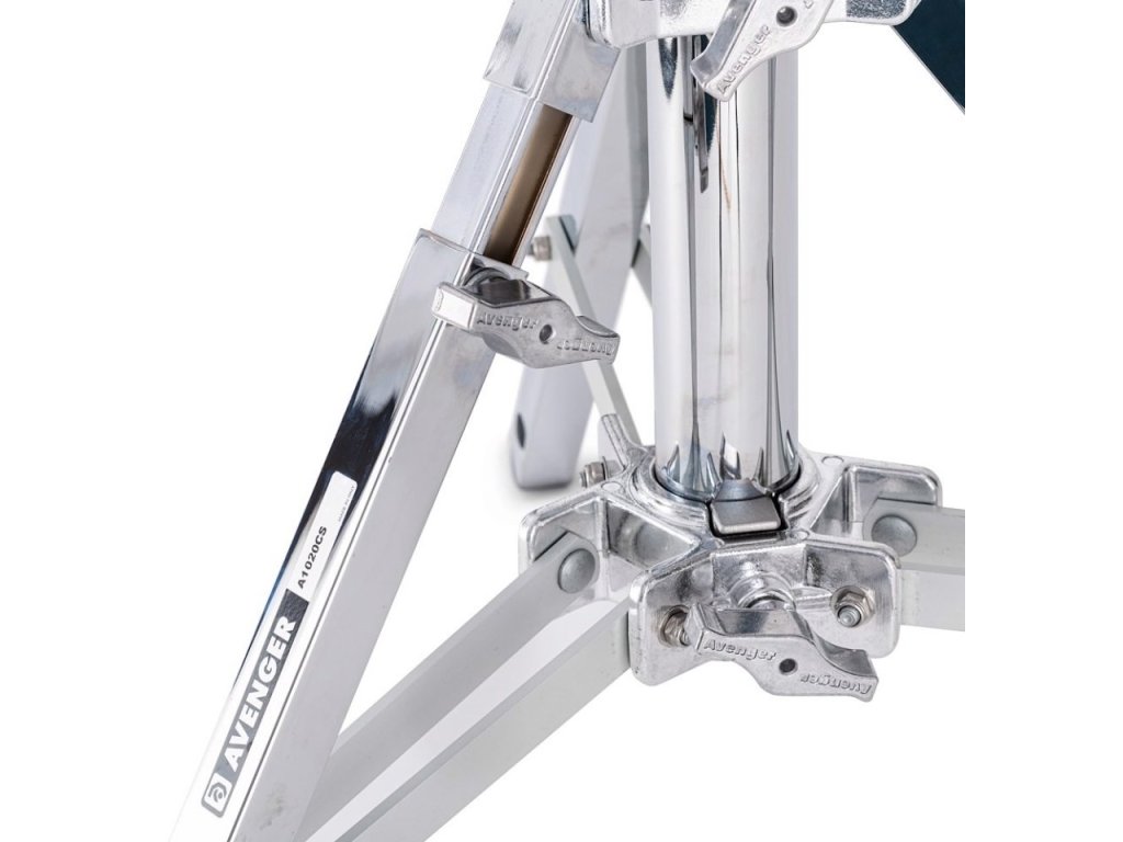 Statyw Avenger A1020CS Chrome Steel Combo z regulowanymi nogami. Statyw poradzi sobie z obciążeniem 35 kg na wysokości 2 m. Ten chromowo-stalowy statyw typu Combo posiada górne mocowanie 28 mm (Junior Receiver) i wbudowane, chowane trzpienie Captive T 16 mm, dzięki którym nie ma ryzyka zgubienia okucia, nawet gdy są całkowicie odkręcone.