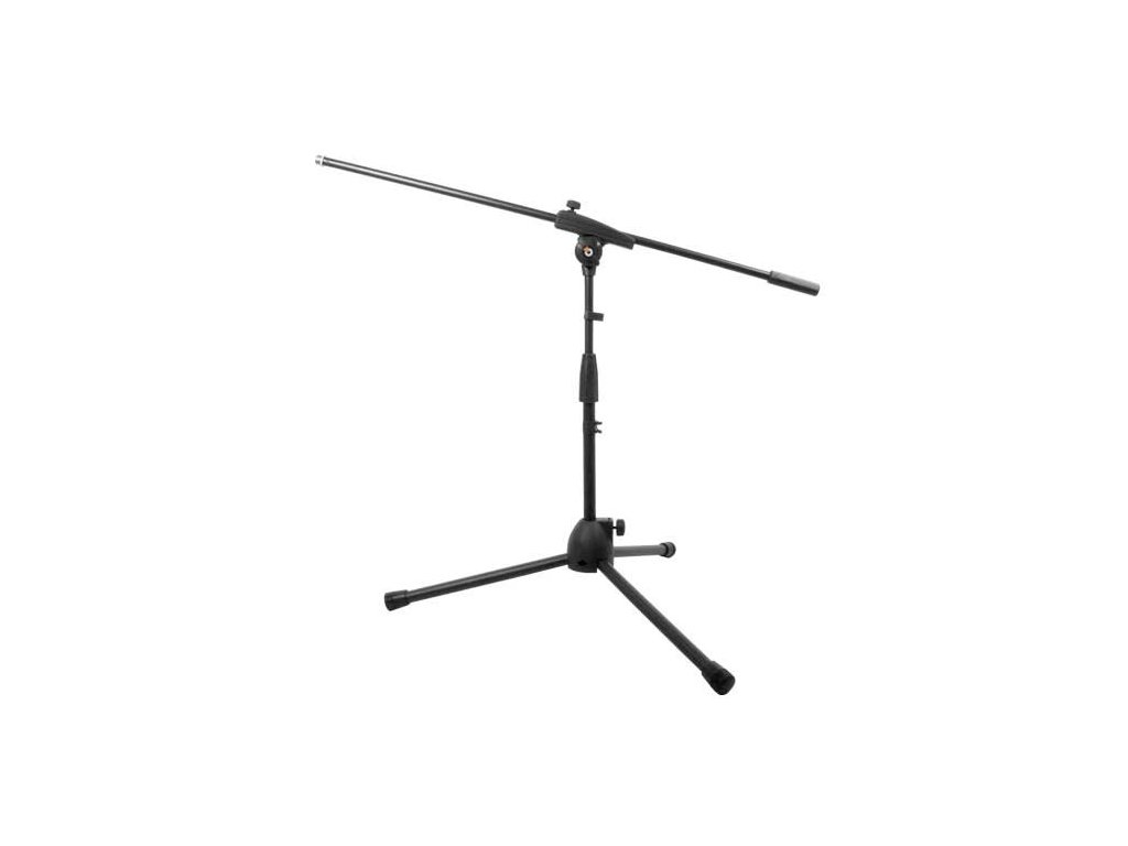 Regulowany, obrotowy statyw mikrofonowy z trójnożną podstawą, zamkiem gwintowanym i regulowanymi zaciskami kablowymi.