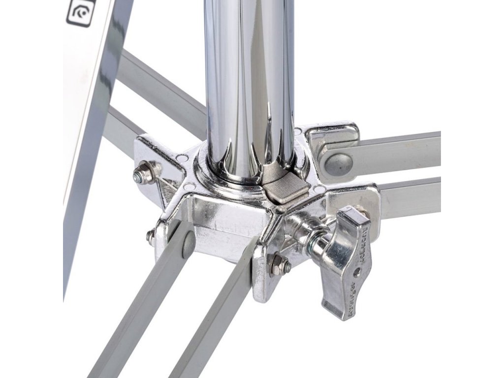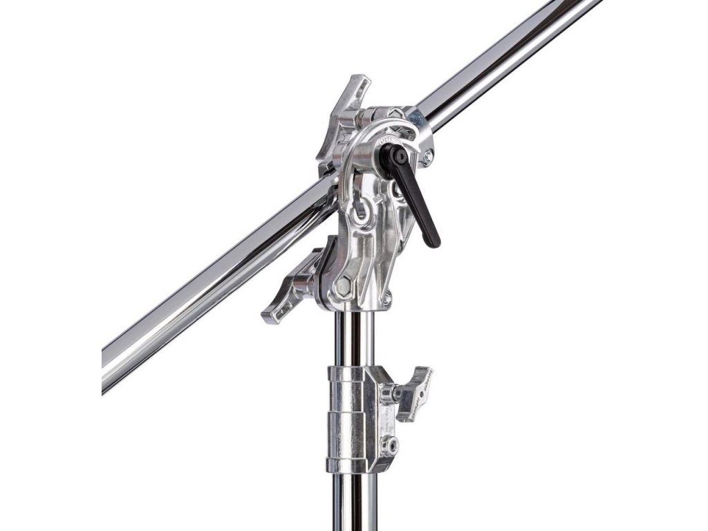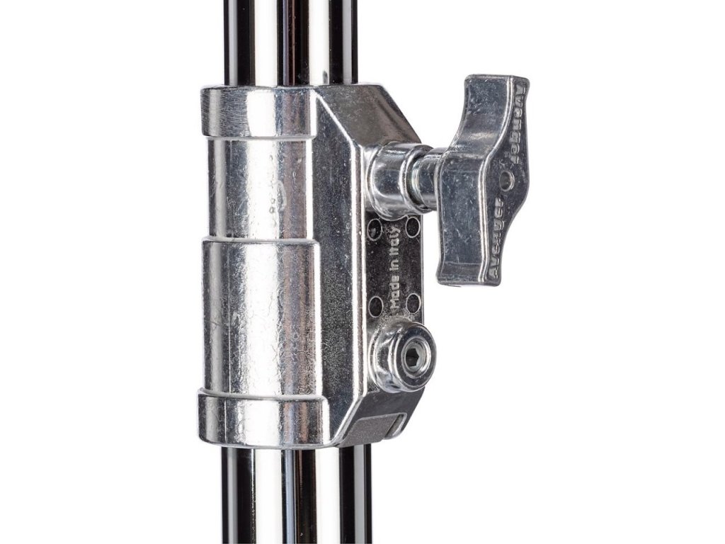 Boomstand Avenger 50 to chromowany stalowy statyw z 4 sekcjami. Może unieść maksymalne obciążenie użytkowe 30 kg i osiągnąć maksymalną wysokość 5 m. Jest również wyposażony w 1 poziomującą nogę do użytku na nierównych powierzchniach. Jest kompatybilny z hamowanymi kołami A9000N, które można zakupić oddzielnie.