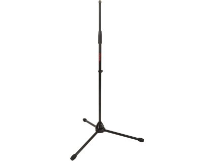 Prosty statyw mikrofonowy ze stabilną podstawą i łatwo regulowaną wysokością.