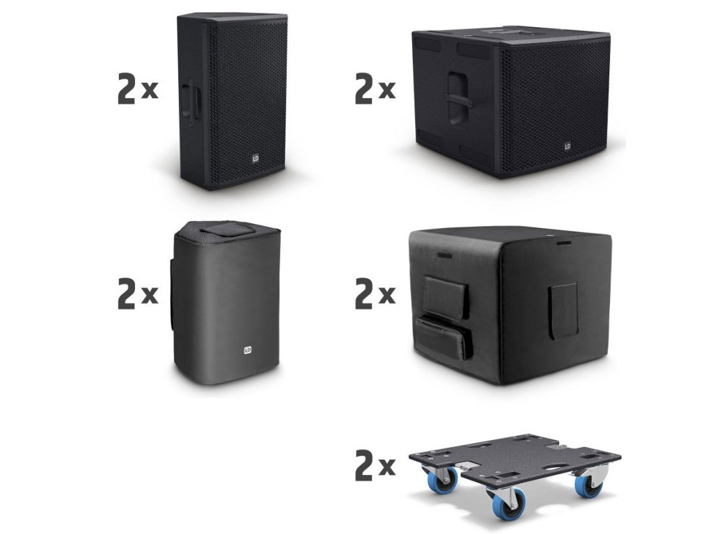 Zestaw głośnikowy składający się z 2 x 10" Aktywnego głośnika PA + 2 x 15" Aktywnego subwoofera.