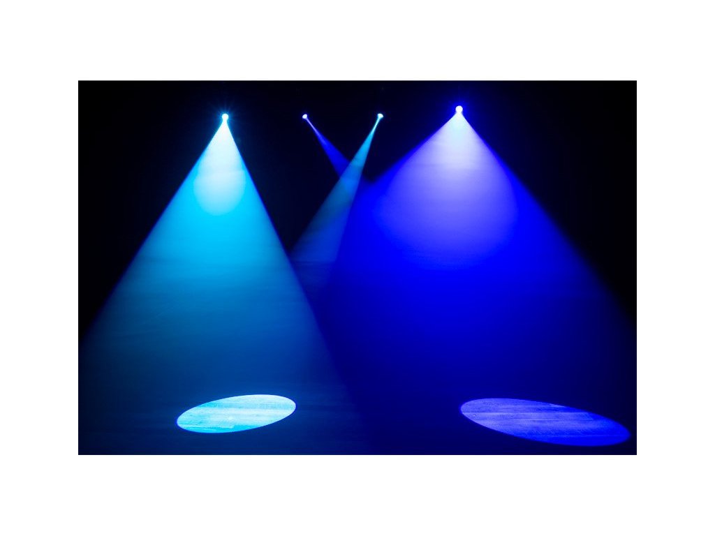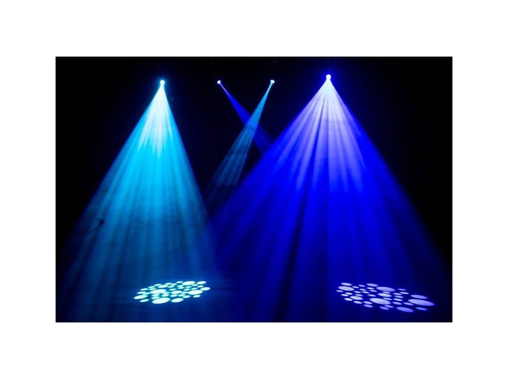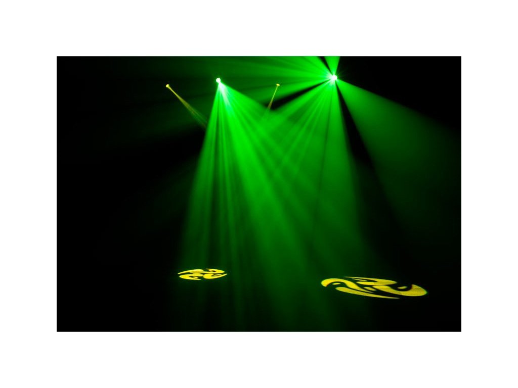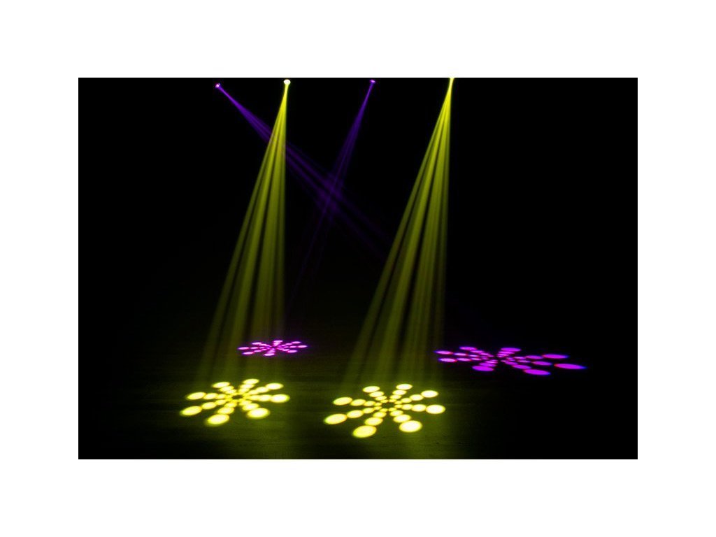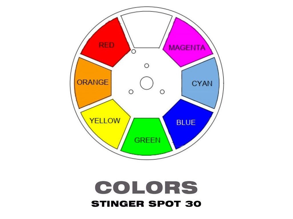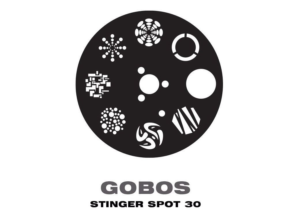 Stinger Spot 30 z 7 kolorami plus białym, 7 GOBO plus punktem na oddzielnych kołach kolorów zapewni czystą ekscytację świetlną dzięki szybko poruszającym się promieniom i zmianom kolorów. Posiada tryb inwersji obrotu i pochylenia, dzięki któremu jedna głowica robi coś przeciwnego do drugiej, gdy są połączone ze sobą.
