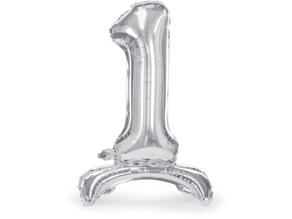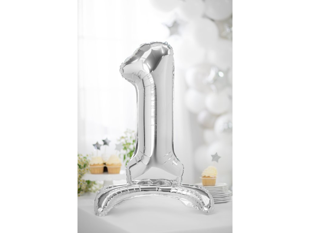 Balon stojący cyfra "1" w kolorze srebrnym, wielkość przed napompowaniem ok. 90 cm (35''), wielkość po napompowaniu ok. 70 cm (27,5''). Napompuj powietrzem.