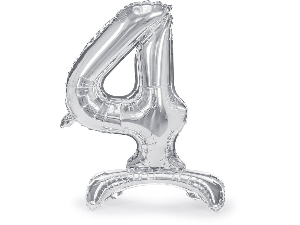 Stojící foliový balón číslo 4 70cm stříbrný