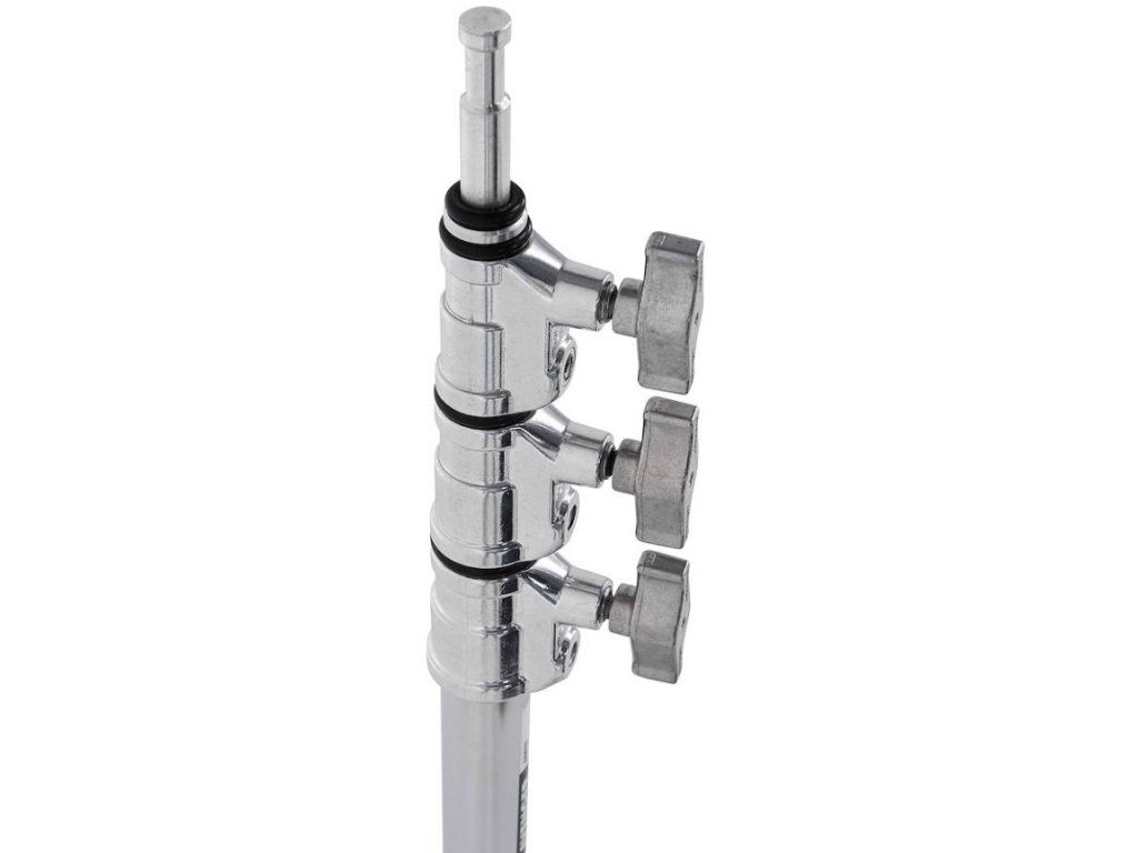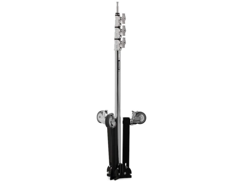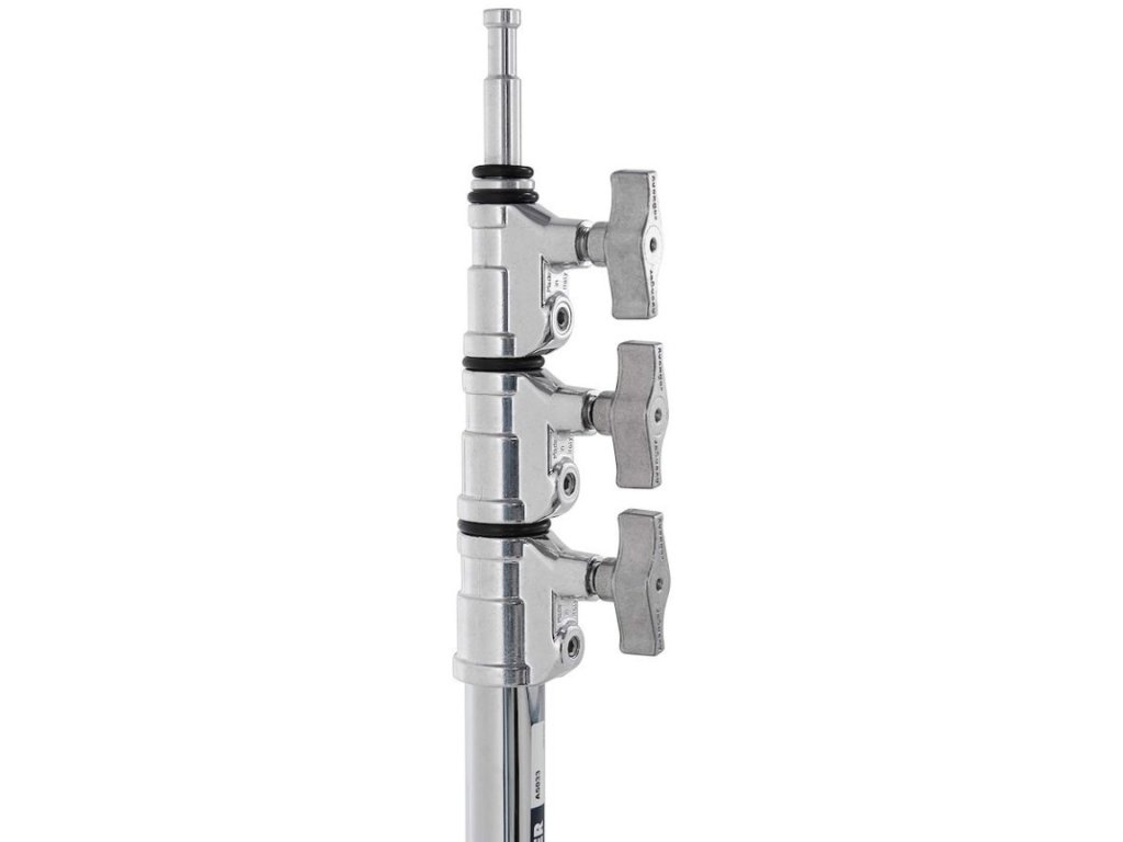 Ten mobilny statyw Avenger z 4 sekcjami ma stalowe nogi i kolumnę oraz aluminiowe stopnie. Udźwignie do 20 kg i osiągnie maksymalną wysokość 3.40 m. Jest wyposażony w kółka ułatwiające transport, a jego nogi składają się dla lepszego przechowywania.