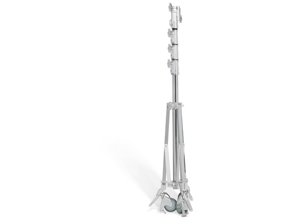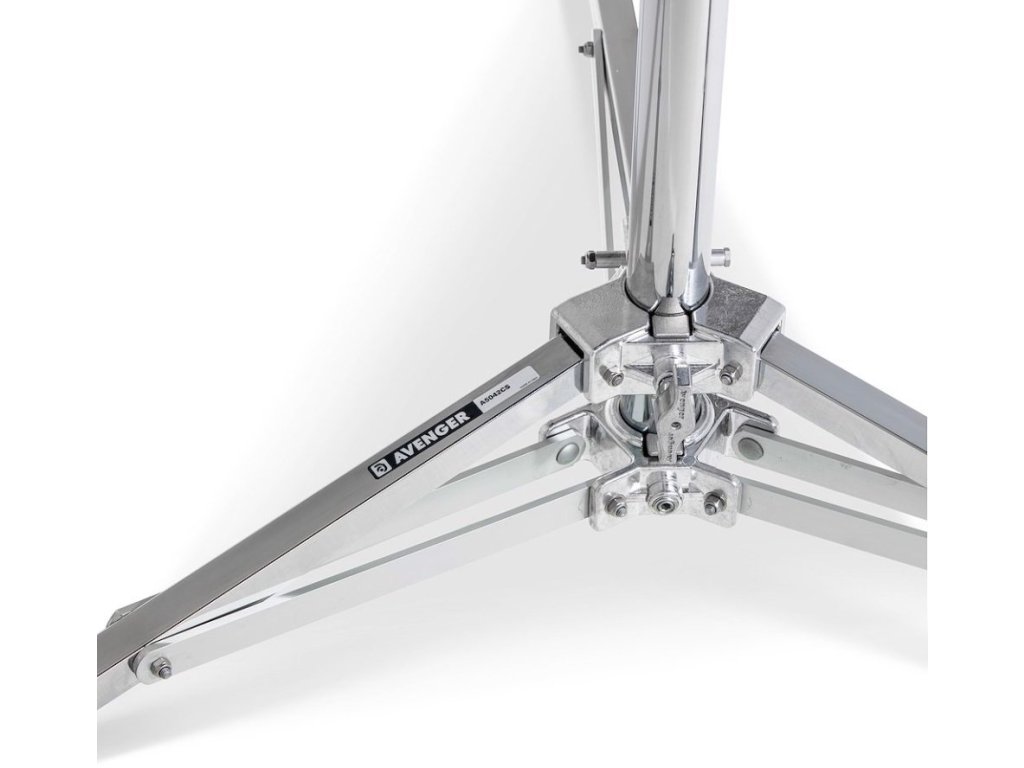 Ten mobilny statyw Avenger z 4 sekcjami ma stalowe nogi i kolumnę. Udźwignie obciążenie do 40 kg i osiągnie maksymalną wysokość 4,20 m. Jest wyposażony w kółka ułatwiające transport i niską podstawę dla większej stabilności.