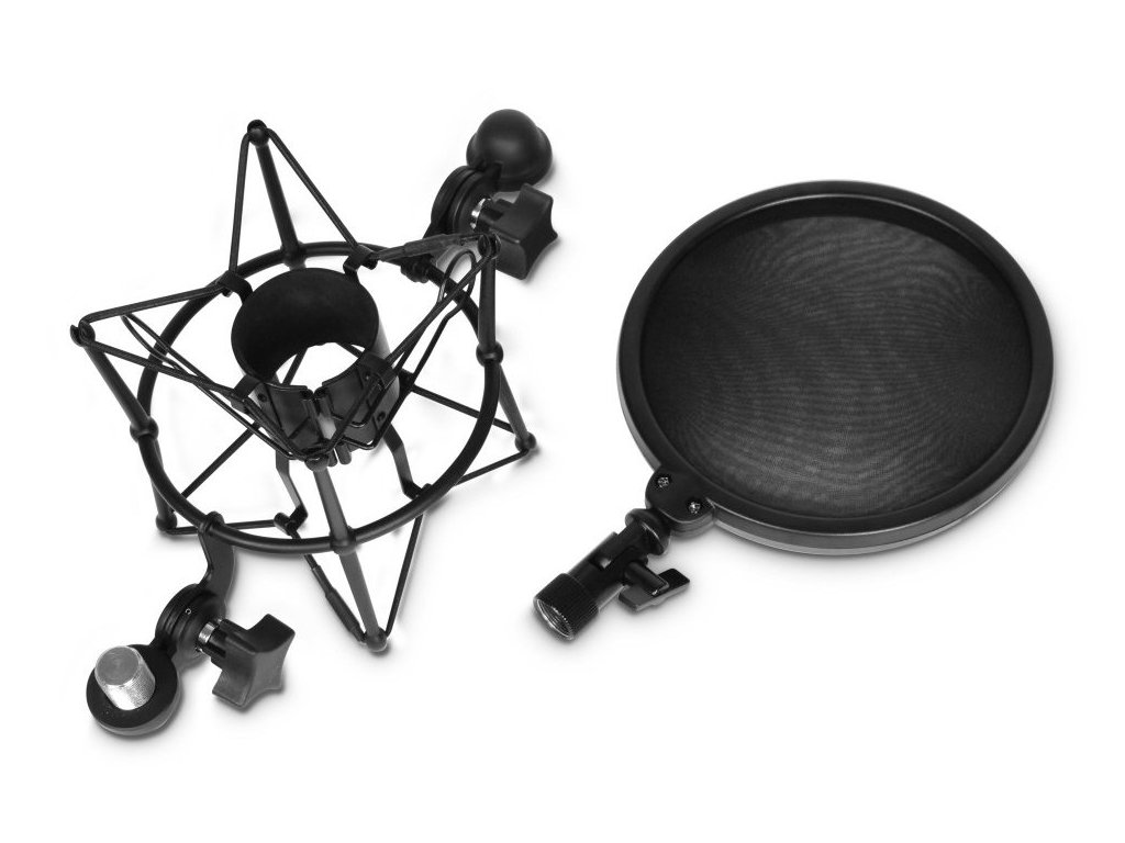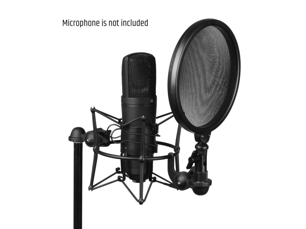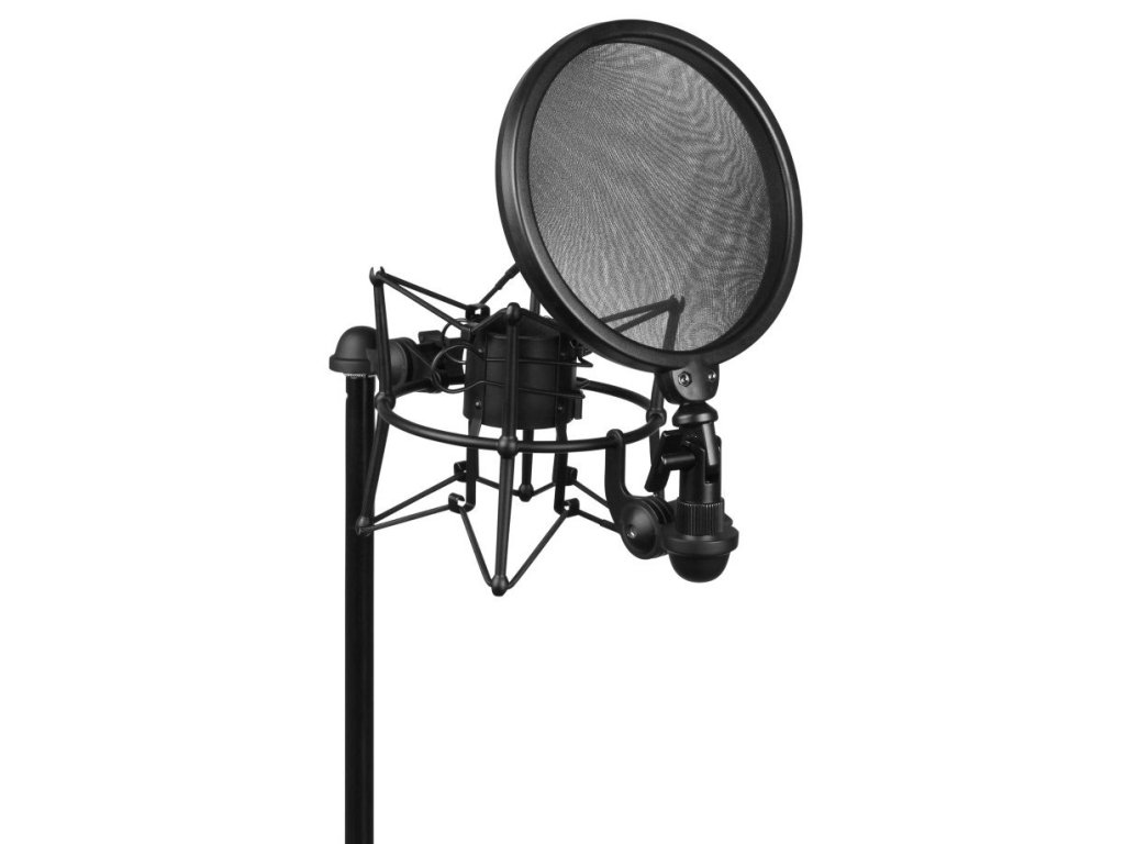 Uchwyt na mikrofon z filtrem pop. Odpowiedni do mikrofonów o średnicy: 43 mm.