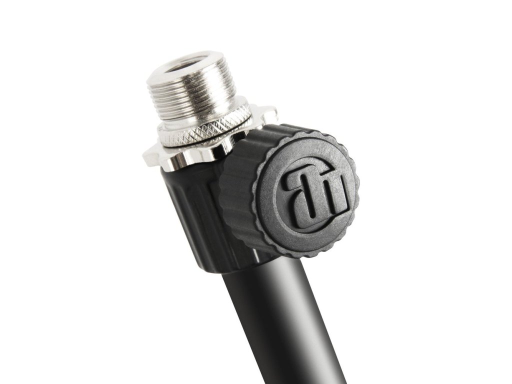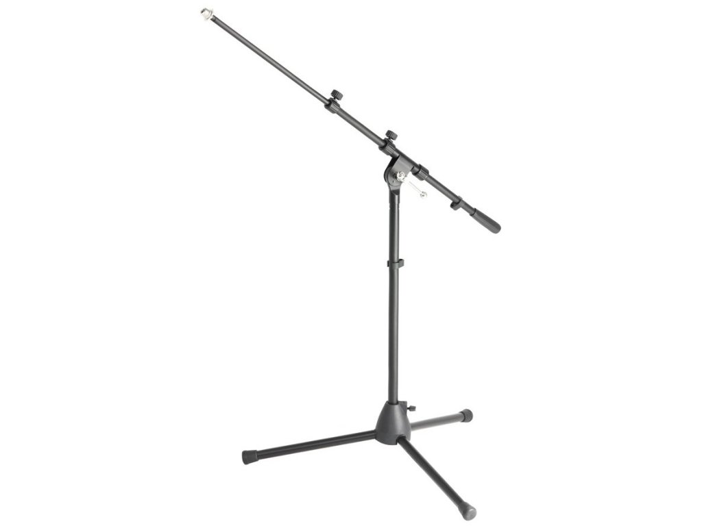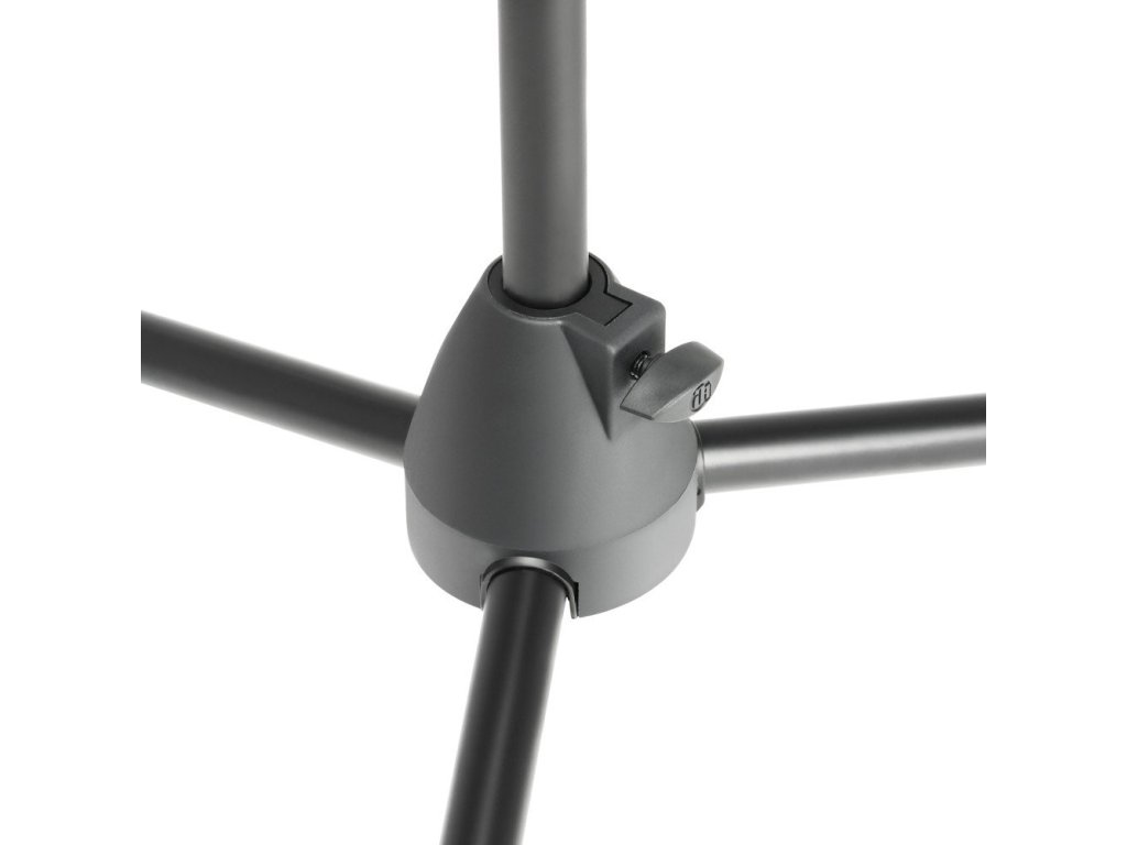 Mały statyw mikrofonowy z ramieniem, czarny. Część teleskopowa.