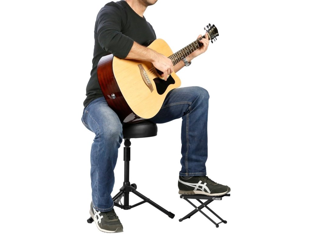 Podpórka pod nogę dla gitarzysty z antypoślizgową gumową powierzchnią.