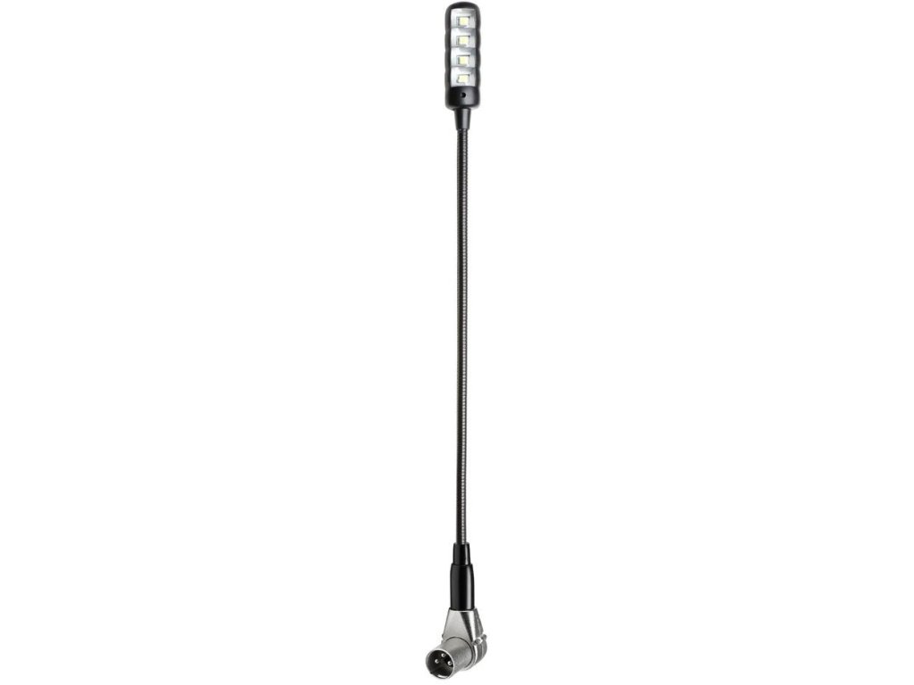 SLED 1 ULTRA XLR 3 A to matowoczarne światło na gęsiej szyi z 4 wyjątkowo jasnymi białymi diodami LED COB i 3-pinowym kątowym złączem XLR, które działa na dedykowanym 12-woltowym świetle roboczym i 48-woltowym zasilaniu phantom. Gęsia szyja o długości 400 mm jest łatwo zginana, a mimo to pozostaje na miejscu, w którym ją zginasz, wyłącznik zasilania jest wygodnie umieszczony na górnej stronie oprawy.