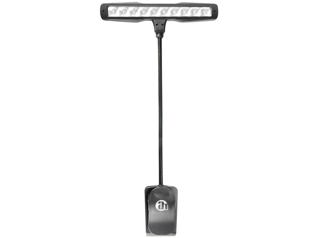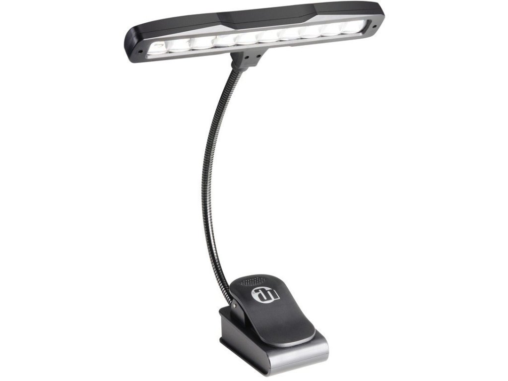 SLED10 to bardzo kompaktowa i praktyczna lampka z opatentowaną konstrukcją przeznaczona do pulpitów nutowych. Dziesięć jasnych i wydajnych diod LED można indywidualnie przełączać między dwoma poziomami jasności. Dodatkowo stożek światła jest regulowany dzięki elastycznej, 220 mm gęsiej szyi. Dzięki długiemu czasowi pracy nadaje się również jako mobilna lampka do czytania i wielofunkcyjna lampka klipsowa do wszystkich problemów z oświetleniem w domu i w podróży.