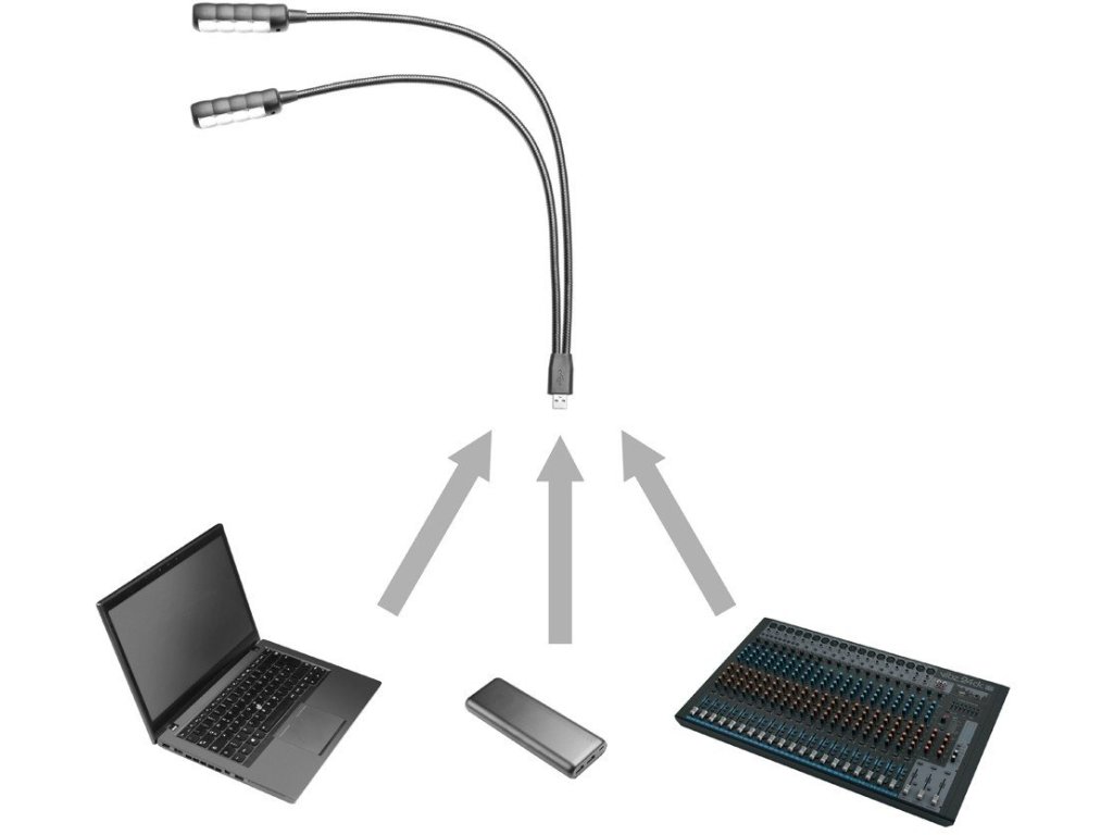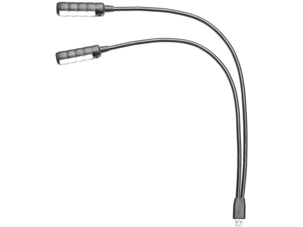 Elastyczne światło może być używane z dowolnym gniazdem USB typu A i jest idealne do mikserów lub statywów. Obie gęsie szyje mają długość 45 cm i można je elastycznie regulować w zależności od tego, gdzie potrzebne jest światło. Każda z nich jest wyposażona w 4 wyjątkowo jasne diody COB LED i indywidualne wyłączniki.
