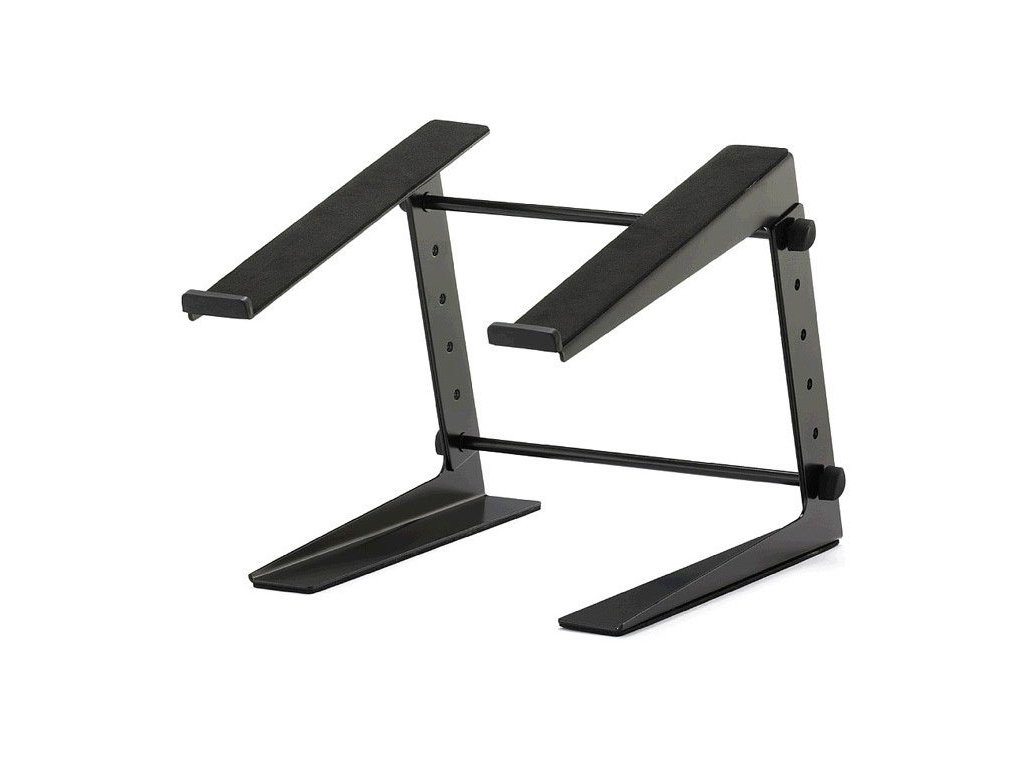 Ten stojak stołowy idealnie nadaje się do umieszczenia laptopa, odtwarzacza CD lub kontrolera oświetlenia scenicznego. Szerokość 22,5 cm, z możliwością regulacji wysokości od 17 do 34 cm. Stojak wykonany jest ze stali malowanej proszkowo. Jest w pełni rozkładany, co ułatwia transport.