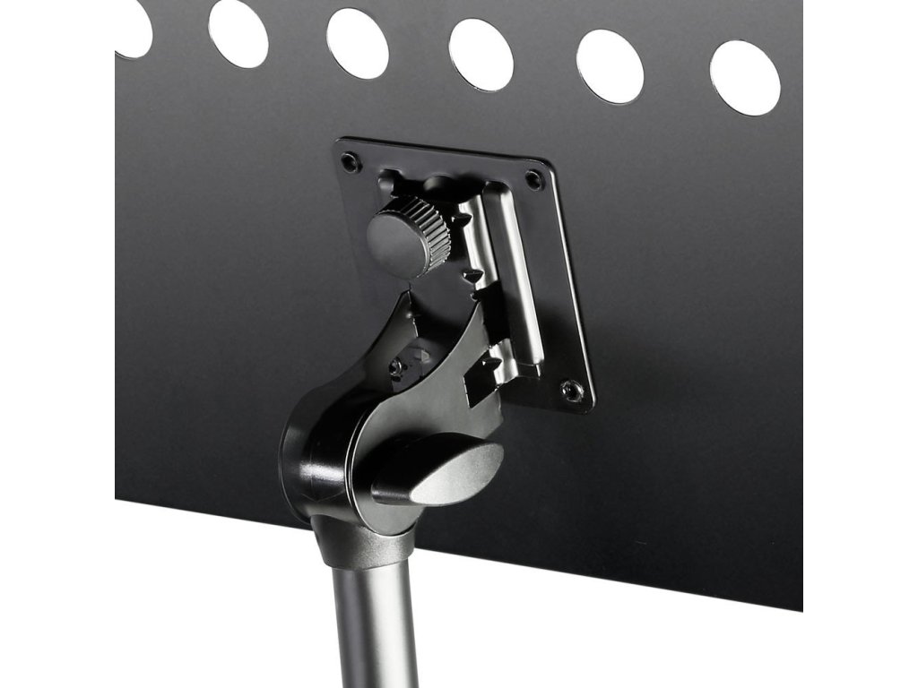 SMS 2 jest wyposażony w perforowane podparcie nutowe i składaną podstawę statywu z wytrzymałej stali z trwałym, czarnym wykończeniem malowanym proszkowo. Wysokość statywu i kąt nachylenia blatu są w pełni regulowane do użytku w pozycji siedzącej lub stojącej. Składana konstrukcja i odłączany zasobnik na nuty ułatwiają przechowywanie i transport.