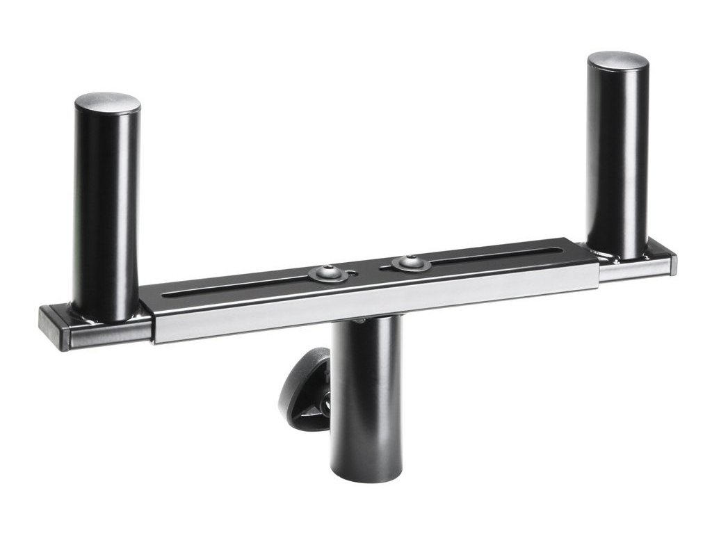 Widelec montażowy do statywów głośnikowych. Kombinacja stalowych rur dla 2 głośników pasuje do wszystkich gniazd o średnicy 36 mm, z regulowanym zakresem 310 - 490 mm.