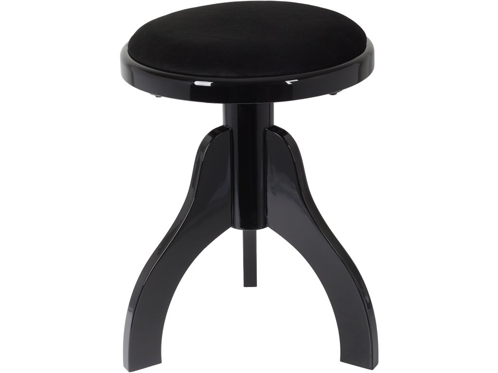Klasyczne, drewniane, trójnożne krzesło do pianina wykonane z wyselekcjonowanego drewna bukowego, z odpinaną poduszką z aksamitu. Nośność 100 kg.