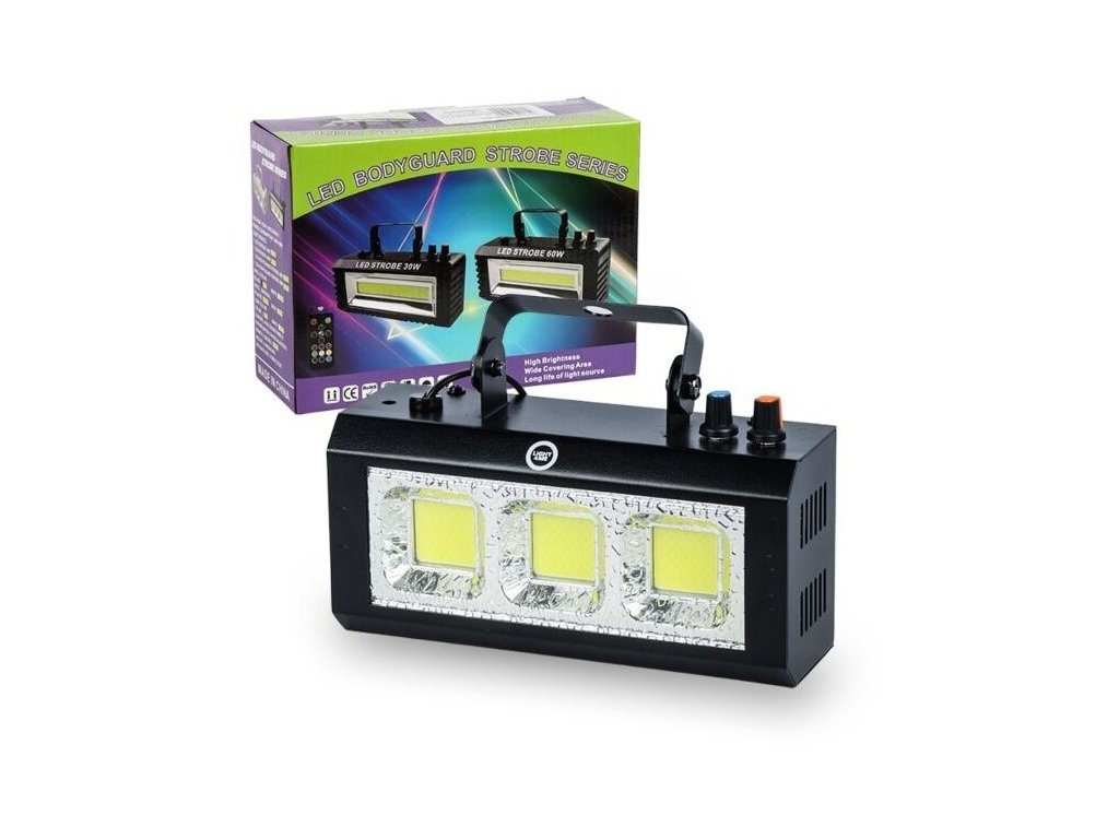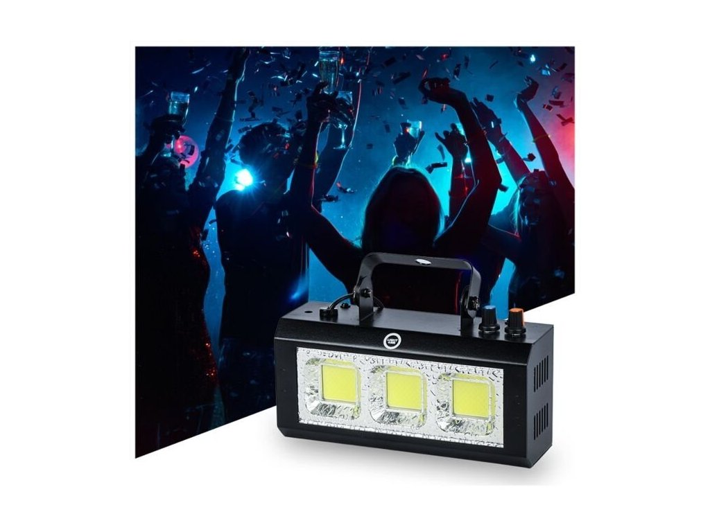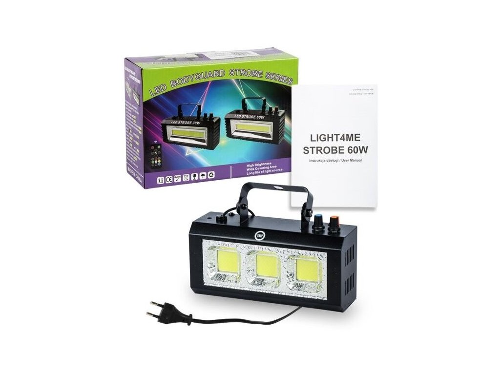 LIGHT4ME STROBE 60W to wyjątkowy stroboskop, który idealnie sprawdzi się w dyskotekach, klubach i na małych scenach. Dzięki systemowi trzech mocnych białych diod LED oferuje niesamowite efekty świetlne, które rozświetlą niemal każdą imprezę. Wbudowany mikrofon z regulowaną czułością umożliwia miganie urządzenia w rytm muzyki.