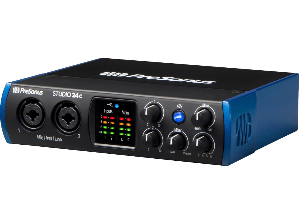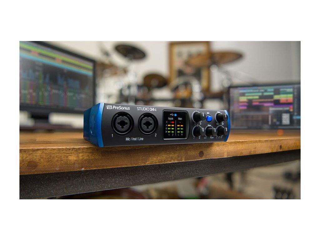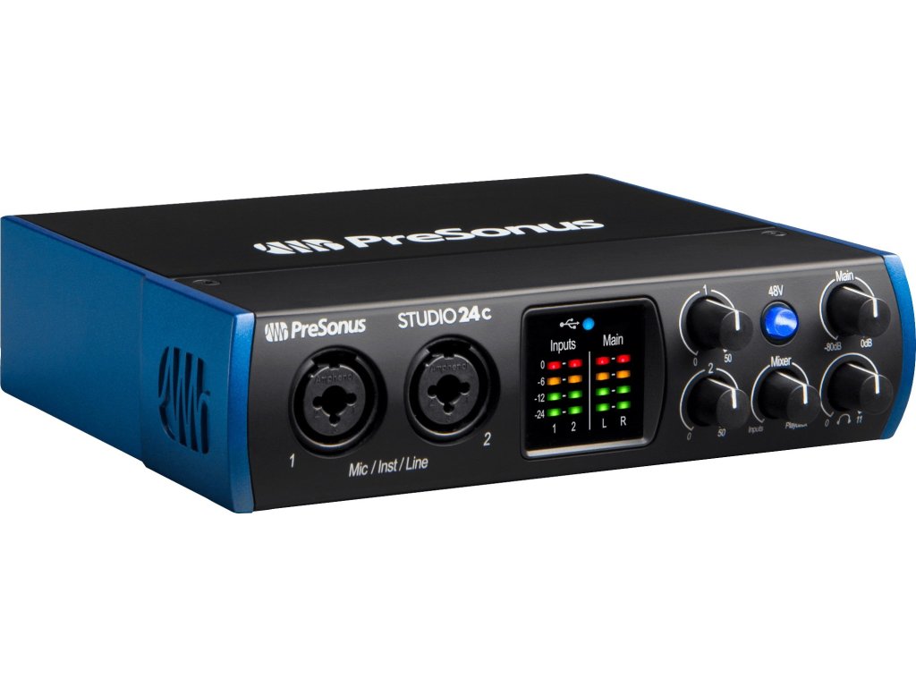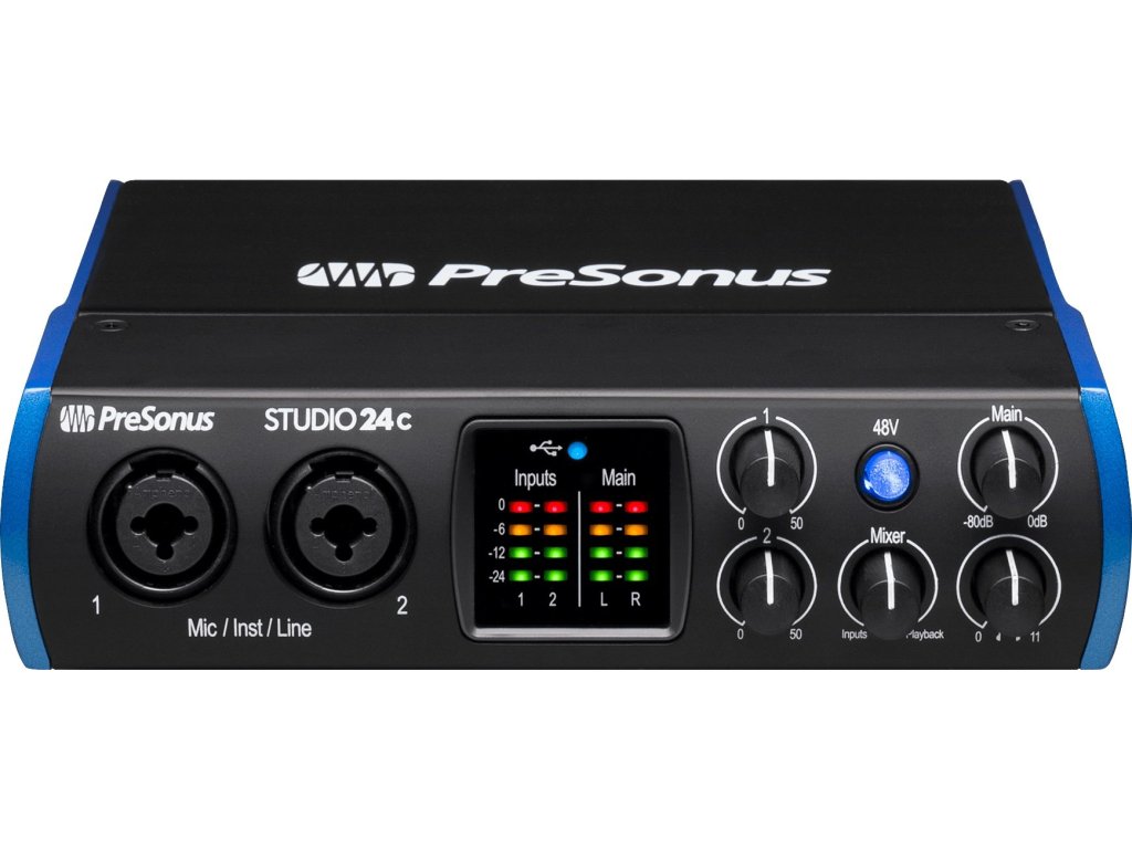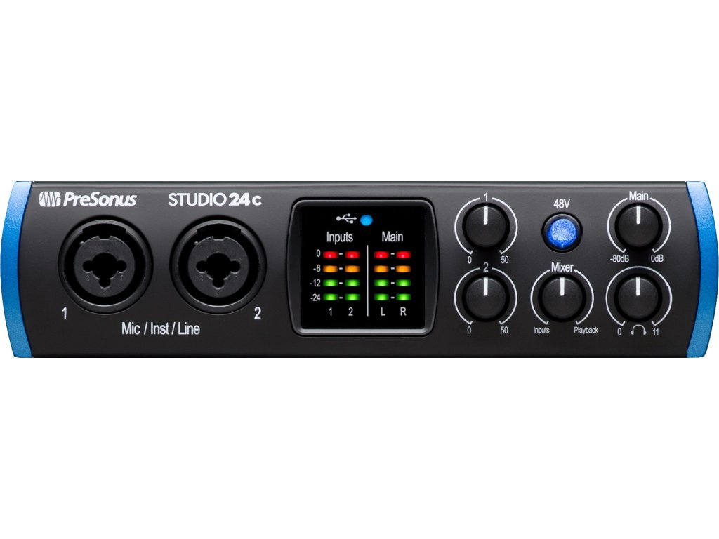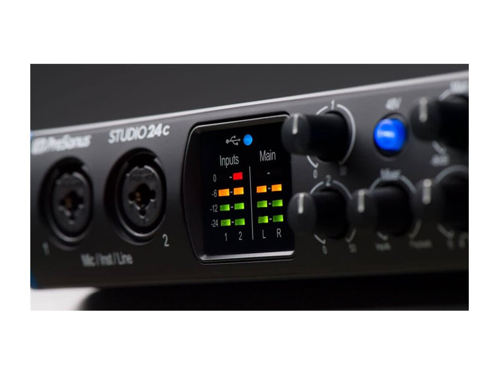 Niezależnie od tego, czy nagrywasz swój pierwszy album, czy najnowszy odcinek podcastu, Studio 24c pomoże Ci uzyskać najlepsze możliwe brzmienie. Studio 24c jest wyposażone w dwa nieskazitelne przedwzmacniacze mikrofonowe XMAX-L firmy PreSonus do nagrywania wokali, instrumentalne przedwzmacniacze high-headroom, dzięki czemu możesz podłączyć gitarę lub gitarę basową bezpośrednio do interfejsu, oraz profesjonalny pomiar wejść, dzięki czemu możesz śledzić poziom nagrywania, a także zapewnia niesamowitą jakość dźwięku w solidnej, kompaktowej obudowie.