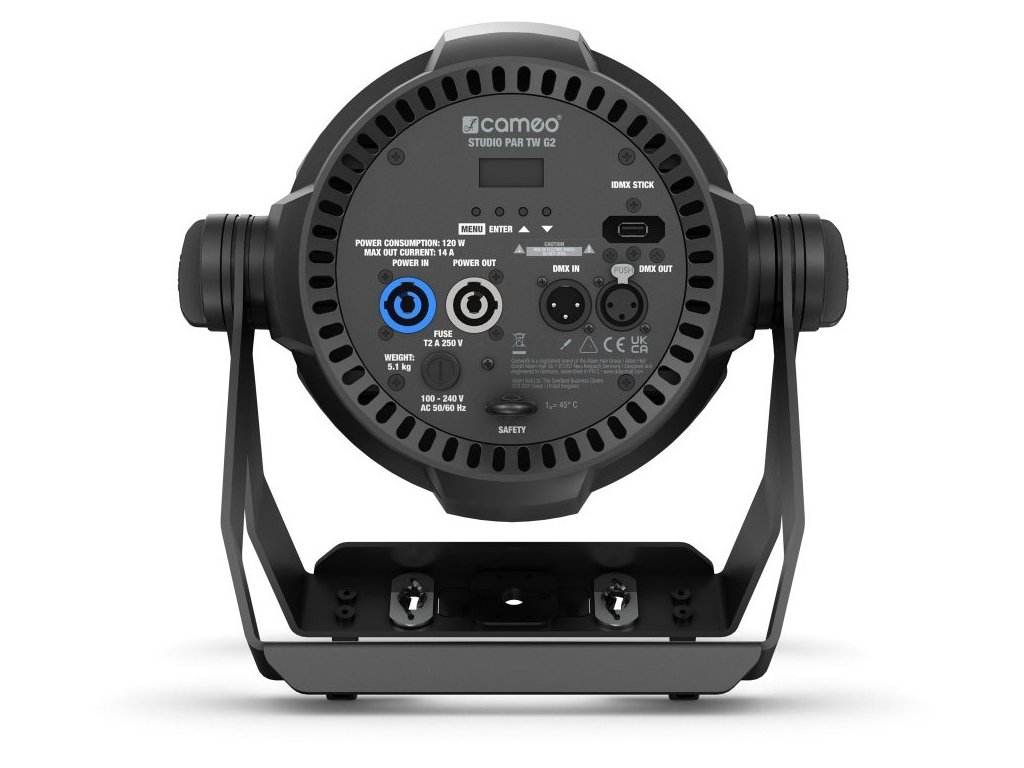 Wyjątkowo kompaktowy STUDIO PAR TW G2 opiera się na 12 x 10 W 3-w-1 Tunable White LED z imponującym strumieniem świetlnym 4 150 lm przy kącie wiązki 18° i równomiernym rozkładzie światła. Dzięki płynnej regulacji białego światła w zakresie od 2 800 do 6 800 K, zmiennej częstotliwości PWM (od 650 Hz do 25 kHz) i naturalnemu odwzorowaniu kolorów (CRI>96) STUDIO PAR TW G2 nadaje się również do zastosowania w teatrze, studiu telewizyjnym, na ekranie filmowym lub na festiwalach. Zastosowanie jest jeszcze bardziej wszechstronne w połączeniu z opcjonalnie dostępnym Cameo iDMX Stick do bezprzewodowego sterowania STUDIO PAR TW G2 przez W-DMX™.