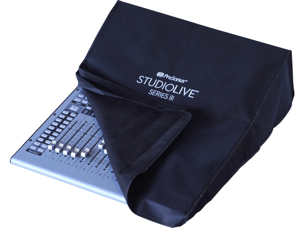 Twój mikser StudioLive Serii III zasługuje na to, by pozostać czysty i jak nowy. Zapewnij mu dobrą pielęgnację dzięki temu stylowemu nylonowemu pokrowcowi przeciwkurzowemu, stworzonemu na miarę dla StudioLive 16 lub StudioLive 32SC.