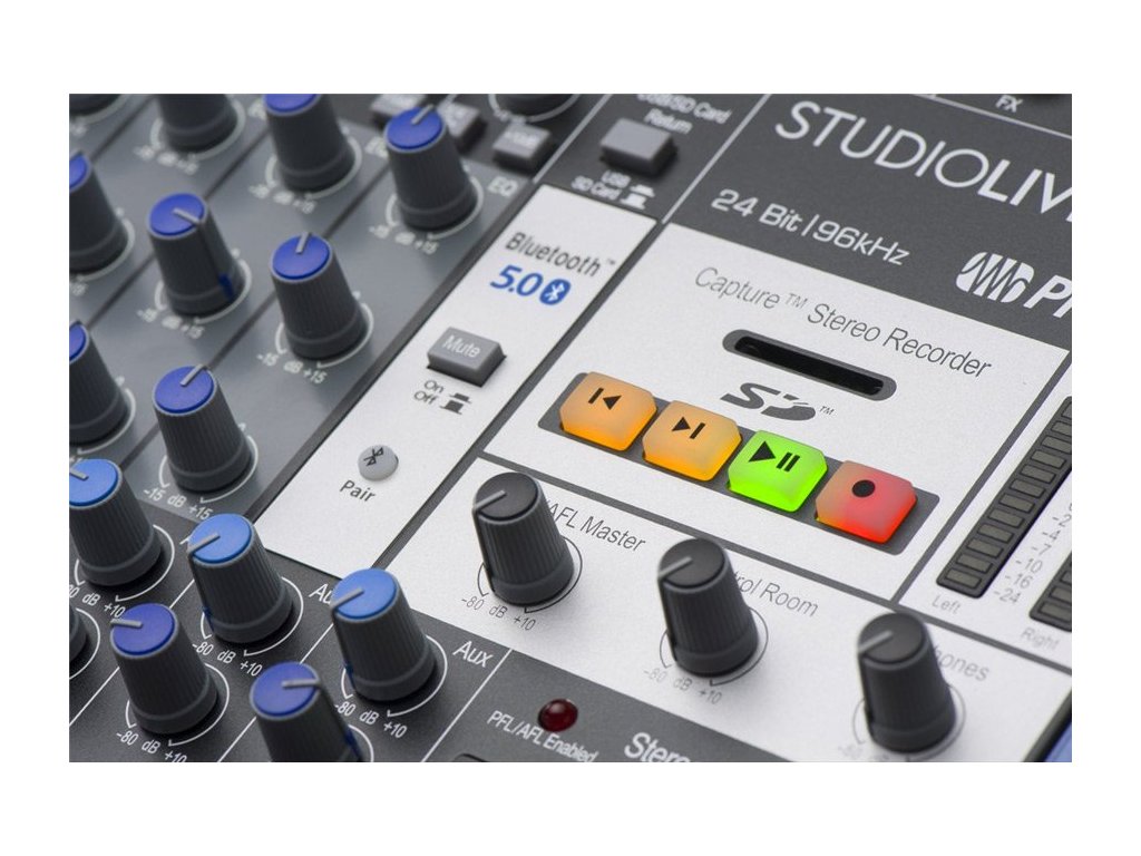 Nie daj się zwieść klasycznemu wyglądowi analogowego miksera – StudioLive AR16c został skonstruowany do nagrywania. Hybrydowa konstrukcja modelu StudioLive AR16c, który jest wyposażony w doskonały analogowy panel przedni z 12 przedwzmacniaczami mikrofonowymi XMAX o wysokim zysku i interfejs audio 18x4, 24-bit, 96 kHz, kompatybilny z USB-C - USB 2.0, umożliwia łatwe miksowanie i nagrywanie. Dodaj muzyczny 3-pasmowy analogowy equalizer, mikrofonowe/liniowe wzmocnienie dla źródeł o niskim poziomie, w tym syntezatorów vintage, zupełnie nowe efekty cyfrowe z bogatymi pogłosami i świeżymi delayami, połączenie Bluetooth i stereofoniczny rejestrator SD, a otrzymasz urządzenie do miksowania i nagrywania, które spełnia potrzeby nowoczesnych muzyków i twórców treści.