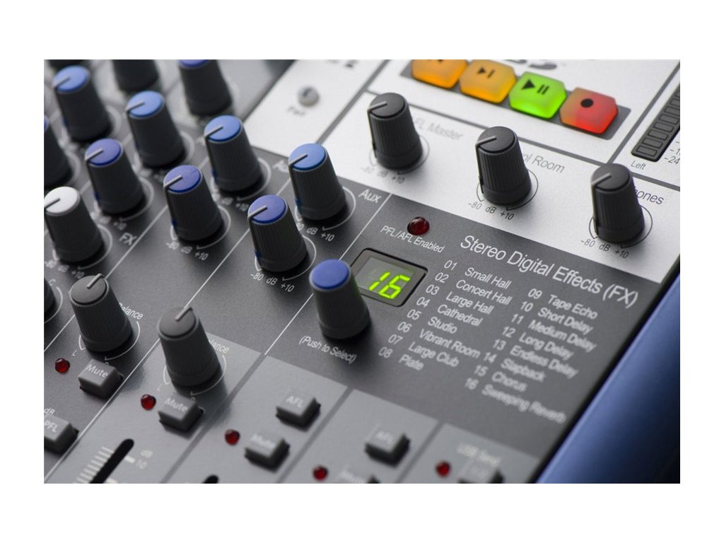 - Rejestrator 2x2 SD (nagrywanie głównego miksu), obsługuje formaty SD i SDHC do pojemności 32 GB