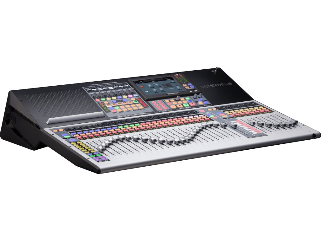 - Wbudowany interfejs sieciowy audio 64x64 AVB umożliwia podłączenie plug-and-play dodatkowych konsolet mikserskich StudioLive Series III, stageboksów PreSonus NSB lub osobistych mikserów monitorowych EarMix 16M
