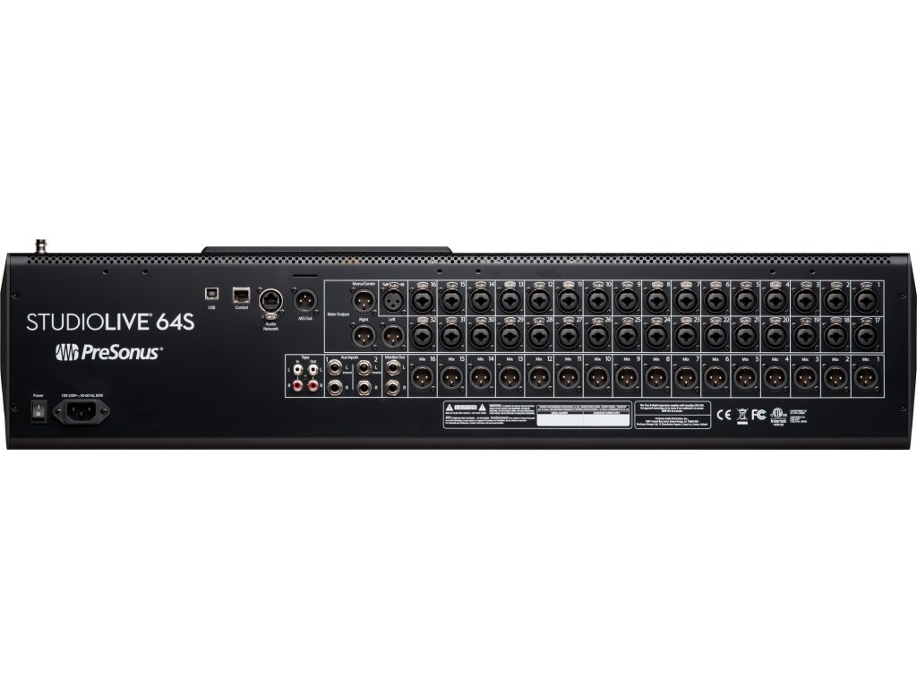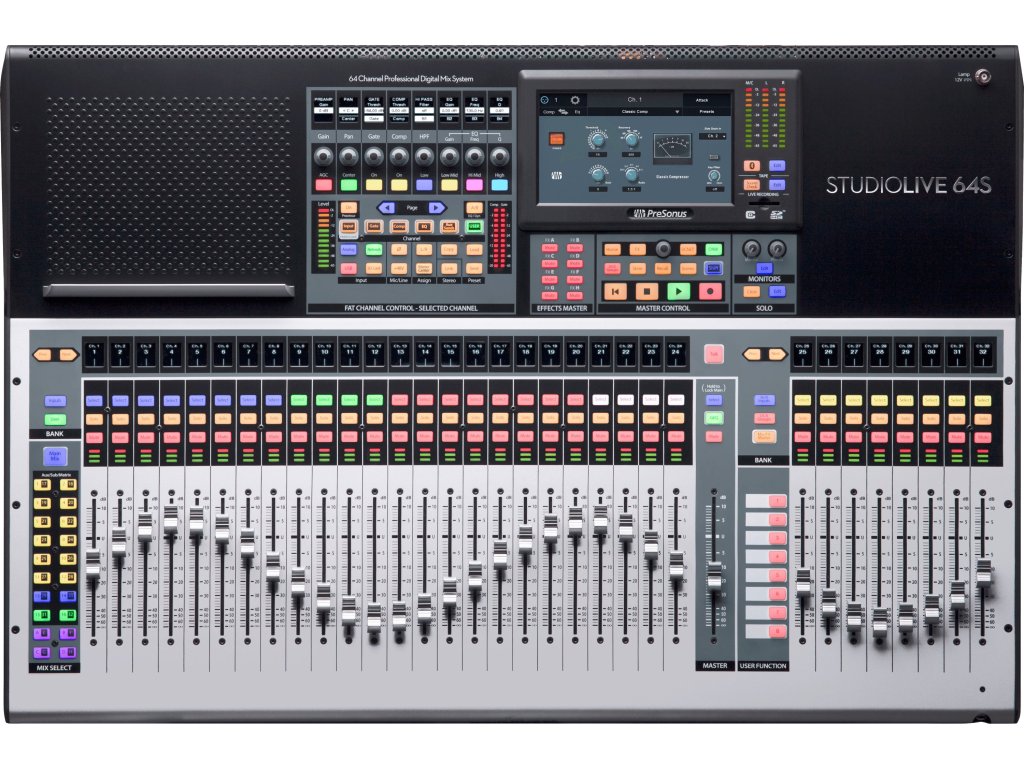 Dzięki 76-kanałowemu StudioLive 64S i kompletnemu pakietowi zintegrowanego oprogramowania, PreSonus oferuje najpotężniejszy i najbardziej elastyczny cyfrowy mikser do nagłośnienia instalacyjnego, tras koncertowych i nagrywania - a wszystko to przy najlepszym stosunku ceny do wydajności. Dzięki czterordzeniowemu procesorowi PreSonus FLEX DSP Engine żaden inny mikser nie dorównuje 128-kanałowemu (64x64) nagrywaniu USB, 76 kanałom miksującym, 43 szynom i oszałamiającym 526 procesorom. Dzięki funkcjom, takim jak chronione hasłem profile użytkowników, ograniczające dostęp do funkcji, oraz sceny mikserskie uporządkowane według projektów, StudioLive 64S jest idealny do dźwięku instalacyjnego. Dzięki wbudowanemu interfejsowi sieciowemu AVB, StudioLive 64S można zintegrować ze stageboxami, osobistymi mikserami monitorowymi, przełącznikami i innymi urządzeniami. Zarządzanie łącznie 76 wejściami jest łatwe dzięki 32 FlexMixom i 24 grupom DCA. Sekcja Fat Channel processingu oferuje rozszerzalne wtyczki z opcjami EQ i kompresji w stylu vintage na każdym kanale i szynie wyjściowej.