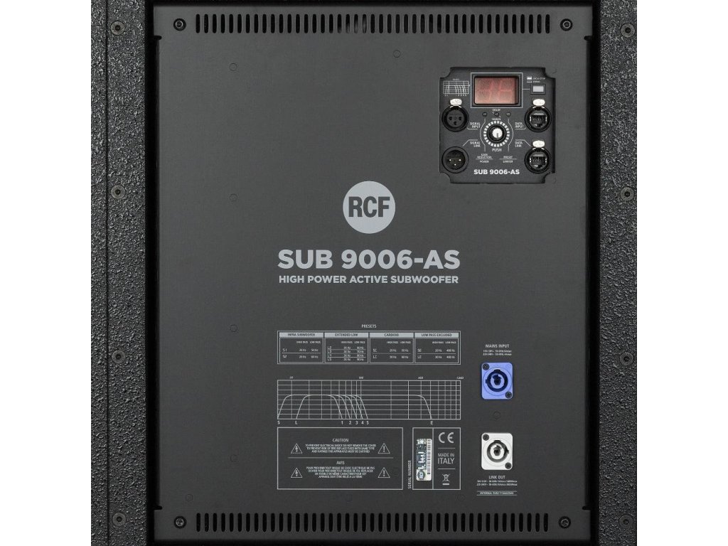 SUB 9006-AS to jeden z najmocniejszych subwooferów 2x18" w dziedzinie nagłośnienia na żywo. Ta obudowa jest wyposażona w dwa wysokowydajne, hiperwentylowane 18" neodymowe woofery z 4,0" cewkami drgającymi wewnątrz i na zewnątrz, zapewniając potężną ilość niskich częstotliwości. SUB 9006-AS jest zasilany cyfrowym wzmacniaczem o mocy 7200 W i potrafi poradzić sobie nawet w najbardziej wymagających sytuacjach. Obudowa modelu SUB 9006-AS pasuje do systemów RCF D-Line HDL50-A i HDL10-A, co umożliwia tworzenie systemów do ustawiania w stosy w doskonałej kombinacji.