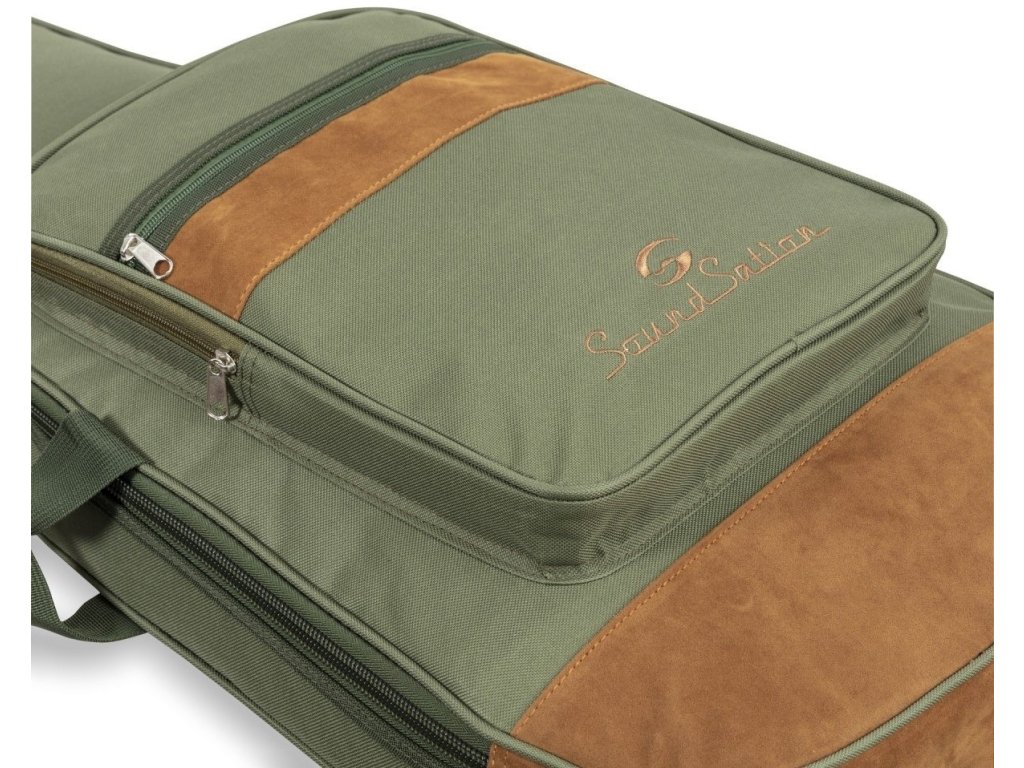 Soundstation SUEDE to stylowy pokrowiec z wstawkami zamszowej skóry, który oferuje wypełnienie EPE o grubości 10 mm dla maksymalnej ochrony Twojego instrumentu. Pokrowiec posiada trzy kieszenie na akcesoria i nuty, jest wyposażony w regulowane paski, tylny i boczny uchwyt oraz ozdobiony haftowanym logo firmy.