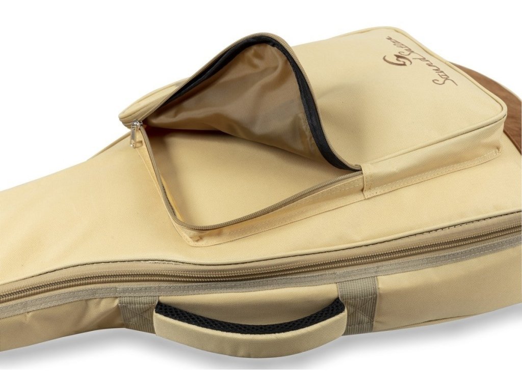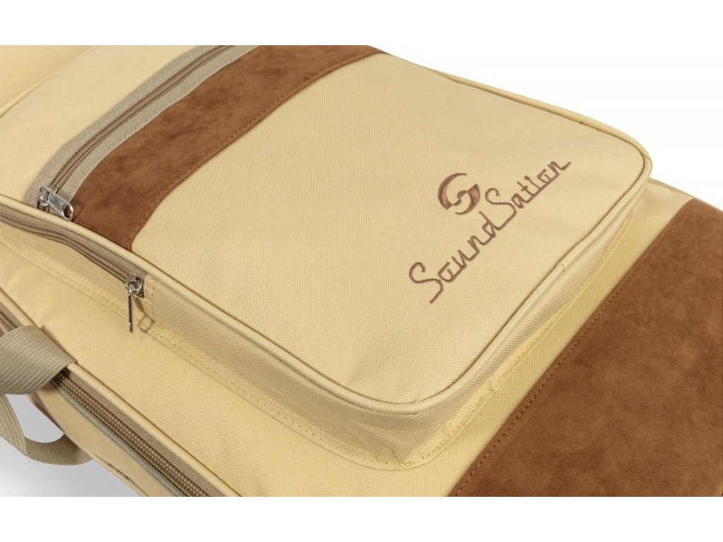 Soundstation SUEDE to stylowy pokrowiec z wstawkami zamszowej skóry, który oferuje wypełnienie EPE o grubości 10 mm dla maksymalnej ochrony Twojego instrumentu. Pokrowiec posiada trzy kieszenie na akcesoria i nuty, jest wyposażony w regulowane paski, tylny i boczny uchwyt oraz ozdobiony haftowanym logo firmy.