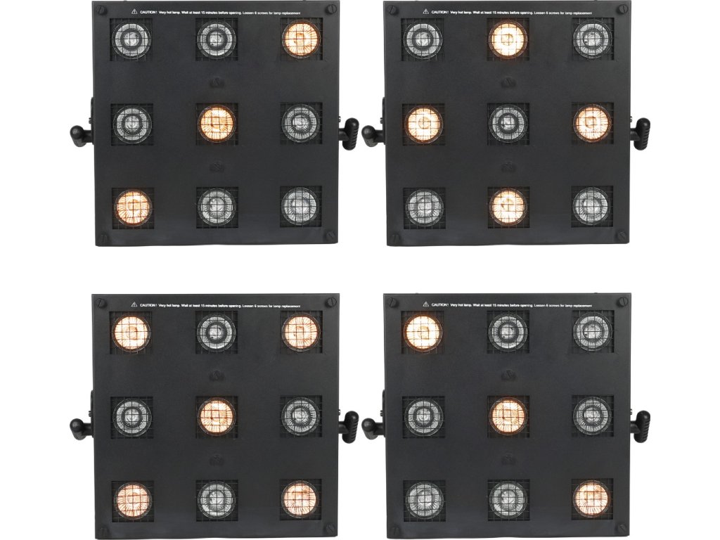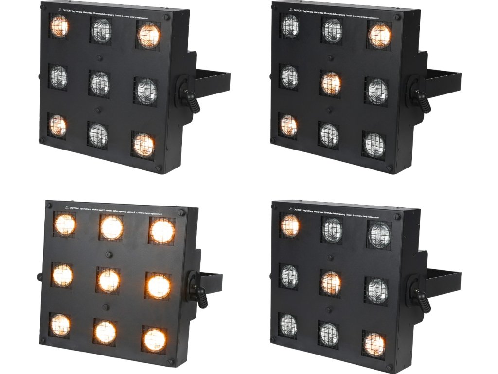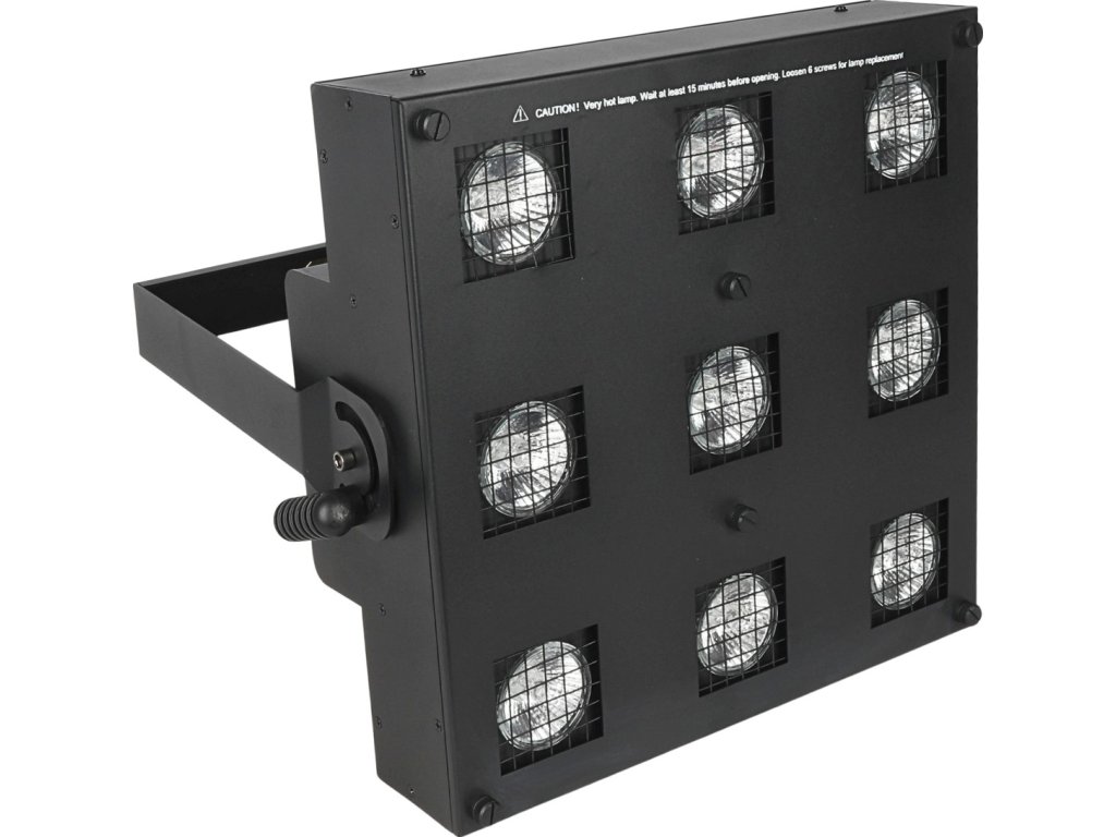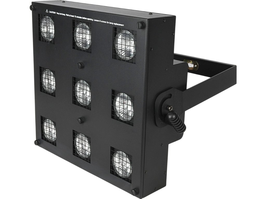 - Typ urządzenia: blinder halogenowy, oświetlenie sceniczne DMX z uchwytem montażowym- Źródło światła: 9x 35W WW halogenowa żarówka GU10