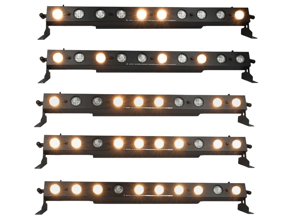 LIGHT4ME SUNSTRIP 1035 to połączenie wysokiej mocy, wysokiej jakości komponentów oraz solidnego i starannego wykonania. Listwa ta jest wyposażona w 10 wydajnych żarówek halogenowych GU10 o mocy 35 W, które emitują światło o temperaturze barwowej 2800 K, przyjemne dla oka. Dzięki temu rodzajowi światła listwa emituje bardzo przyjemną, ciepłą barwę. Praca każdej żarówki może być sterowana indywidualnie za pomocą protokołu DMX (Pixel Control), co znacznie ułatwia dostosowanie oświetlenia do własnych potrzeb. Ergonomiczna konstrukcja obudowy zapewnia wygodny dostęp do złączy DMX i gniazd PowerCon. Dodatkowo, dzięki wyjściu zasilającemu typu „power linking”, możliwe jest przesyłanie napięcia bezpośrednio z urządzenia do urządzenia, co eliminuje potrzebę stosowania wielu gniazdek. LIGHT4ME SUNSTRIP 1035 został również wyposażony w praktyczną funkcję obracania orientacji wyświetlacza, dzięki której można w dowolnym momencie obrócić ekran i łatwo odczytać potrzebne informacje, nawet jeśli urządzenie nie znajduje się w domyślnej pozycji.