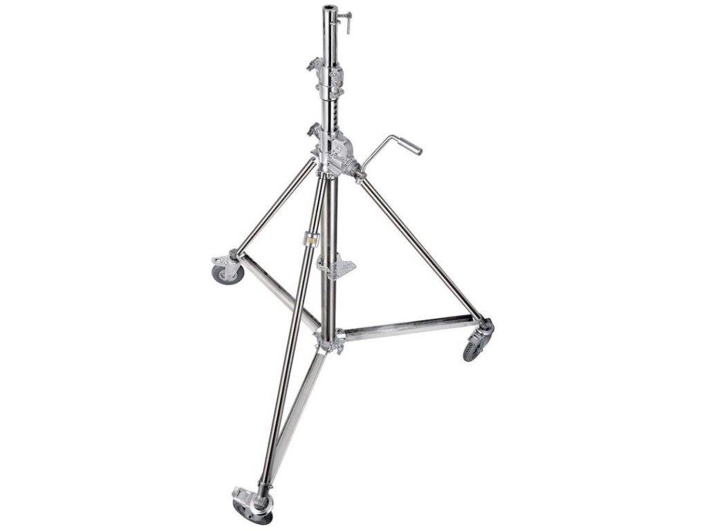 Statyw Avenger Super Wind Up jest wyposażony w kolumnę i nogi ze stali nierdzewnej, podesty z chromowanej stali i kolumnę przekładniową. B6040X charakteryzuje się 3 sekcjami i 2 podestami, które wydłużają się jednocześnie poprzez obrócenie dźwigni. Zintegrowany system linek bezpieczeństwa zapewnia jednoczesną regulację wszystkich sekcji. Jest wyposażony w szybką stopkę regulacyjną i hamulcowe podkładki piankowe (kod 474) dla łatwej pracy nawet w trudnym terenie. Maksymalne obciążenie statywu wynosi 80 kg, a jego maksymalna wysokość to 3,86 m. Wykonany ze stali nierdzewnej, chromowanej stali, wyposażony w kolumnę przekładniową. Jest w stanie pracować z obciążeniem do 80 kg na wysokości do 4 m. Wyposażony w hamulcowe podkładki piankowe. 3 sekcje i 2 podesty. Stopka do szybkiego i łatwego poziomowania i ustawiania na każdym terenie.