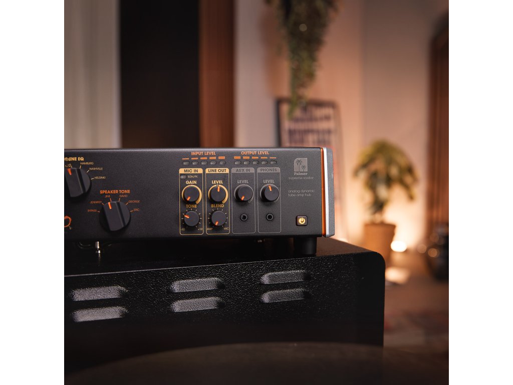 Reaktywny tłumik i zasilacz: Dostrój optymalne brzmienie wzmacniacza lampowego przy dowolnej głośności, od cichego nagrywania po pełną moc, bez konieczności podłączania kolumny głośnikowej.