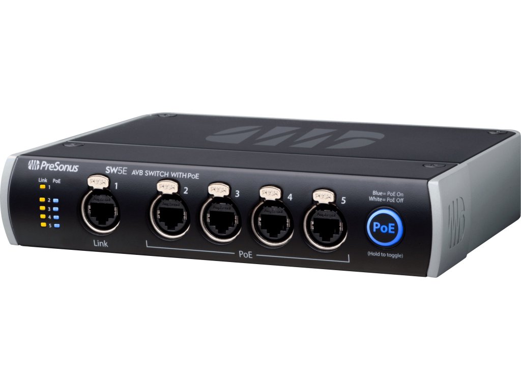 - 5-portowy przełącznik AVB dla urządzeń StudioLive drugiej i trzeciej generacji
