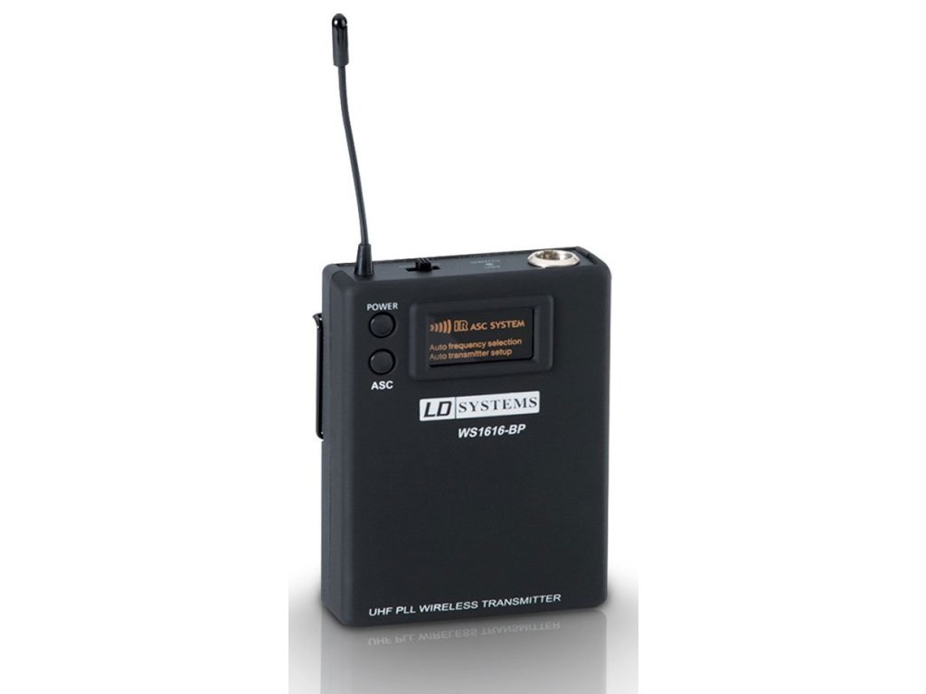 Nadajnik Bodypack do gitary, mikrofon krawatowy i słuchawki z 3-pinowym złączem Mini XLR. Łatwa obsługa i ustawianie 16 kanałów. Oddzielnie regulowany poziom gitary z wysoką impedancją i dwoma poziomami mikrofonu dla optymalnego dopasowania. Wskaźnik rozładowanej baterii. Około 12 godzin pracy na 2 bateriach AA Mignon. Metalowy klips do profesjonalnego mocowania na pasku, kieszeni itp.