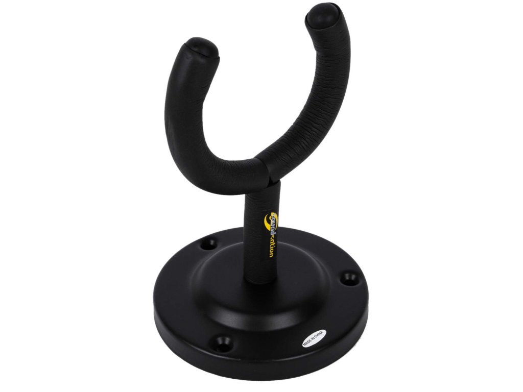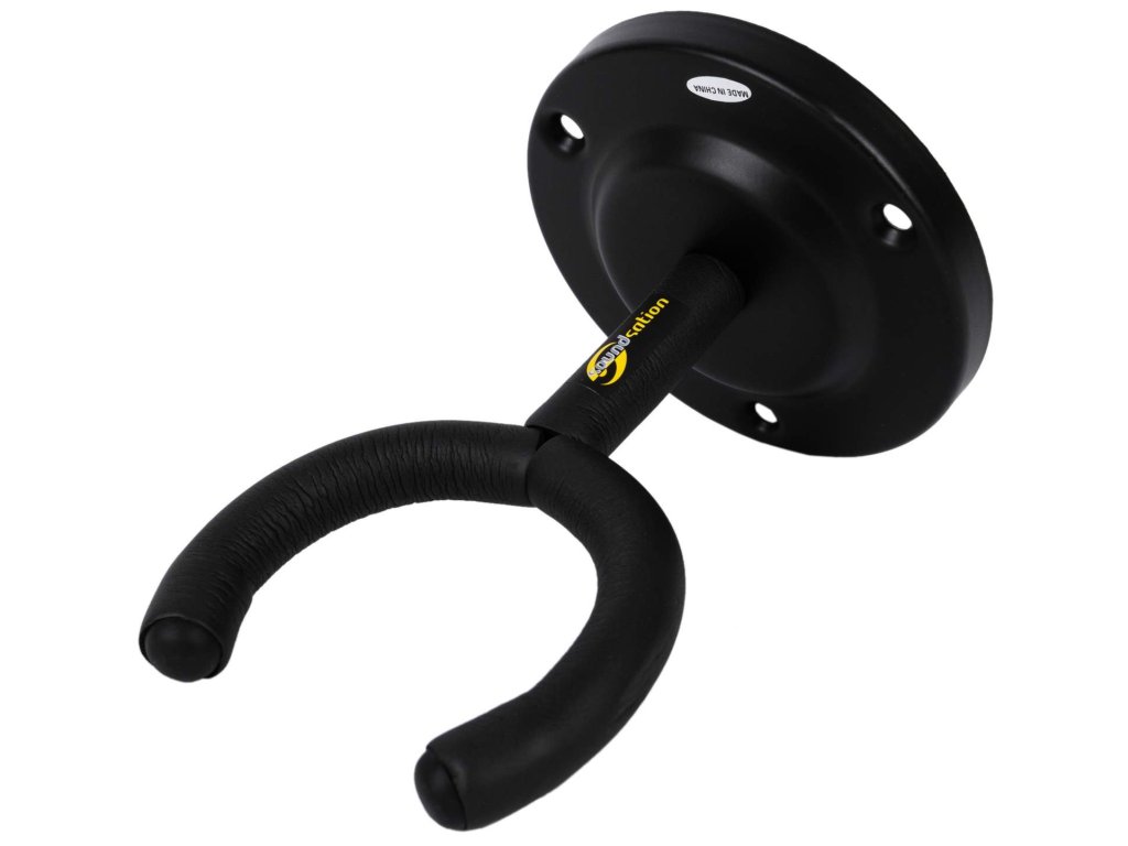 Uniwersalny metalowy wieszak odpowiedni do wszystkich typów gitar. Widelec jest pokryty gumowaną warstwą, aby zapobiec uszkodzeniu lakieru gitary. Śruby do przymocowania wieszaka nie są częścią zestawu.