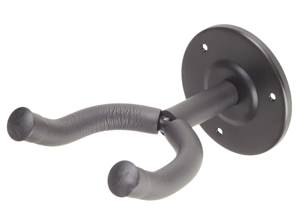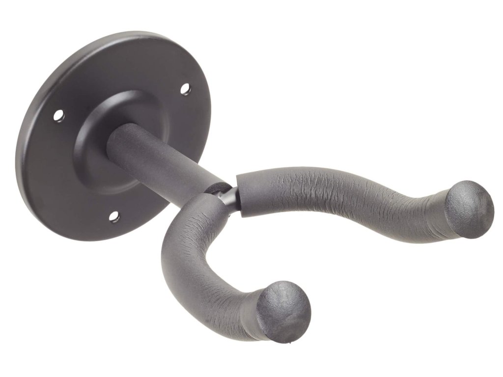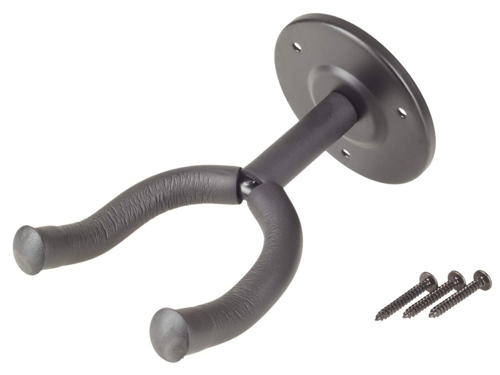 Uniwersalny metalowy wieszak odpowiedni do wszystkich typów gitar. Widelec jest pokryty gumowaną warstwą, aby zapobiec uszkodzeniu lakieru gitar. Śruby do przymocowania wieszaka nie są częścią zestawu.