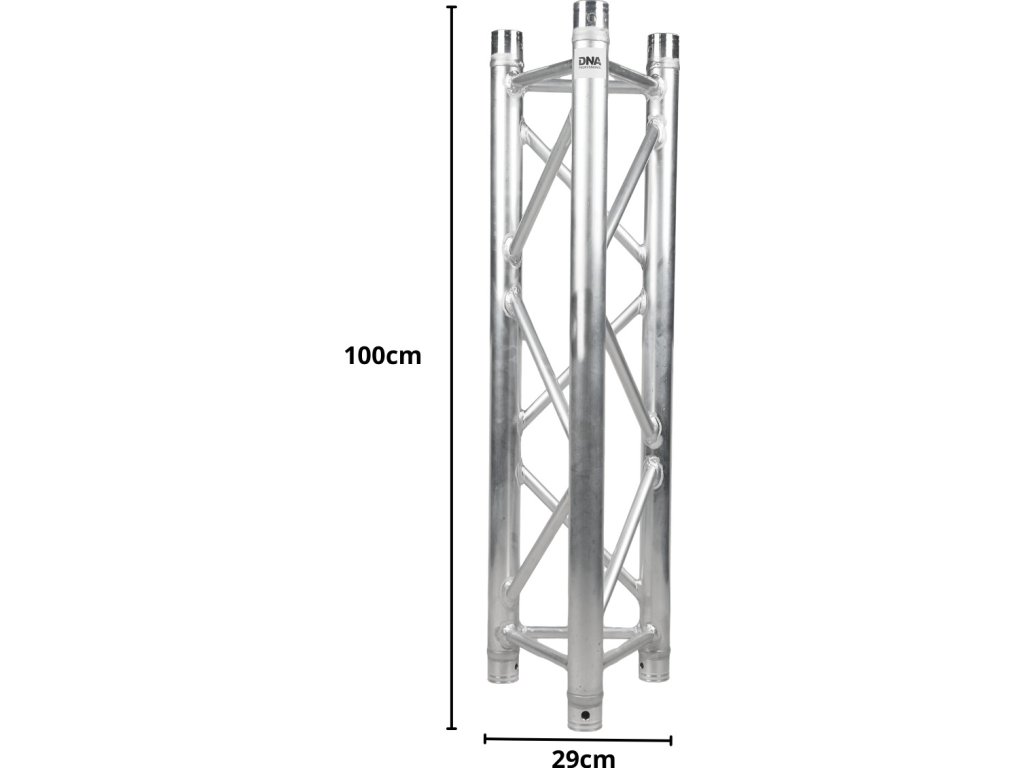 DNA T3 100 to trójkątna kratownica o solidnej i wytrzymałej konstrukcji. Łatwy w montażu, stosunkowo lekki i mobilny. Kratownica ta jest idealną konstrukcją przeznaczoną do efektów świetlnych scenicznych, takich jak mini głowy ruchome, reflektory PAR czy efekty dyskotekowe. Jeśli szukasz uzupełnienia dla zaplecza zespołu muzycznego lub DJ-a, ta kratownica będzie doskonałym wyborem.