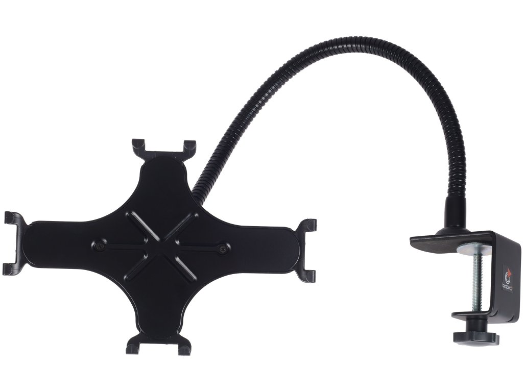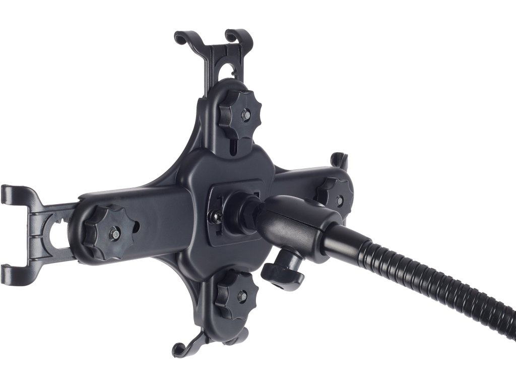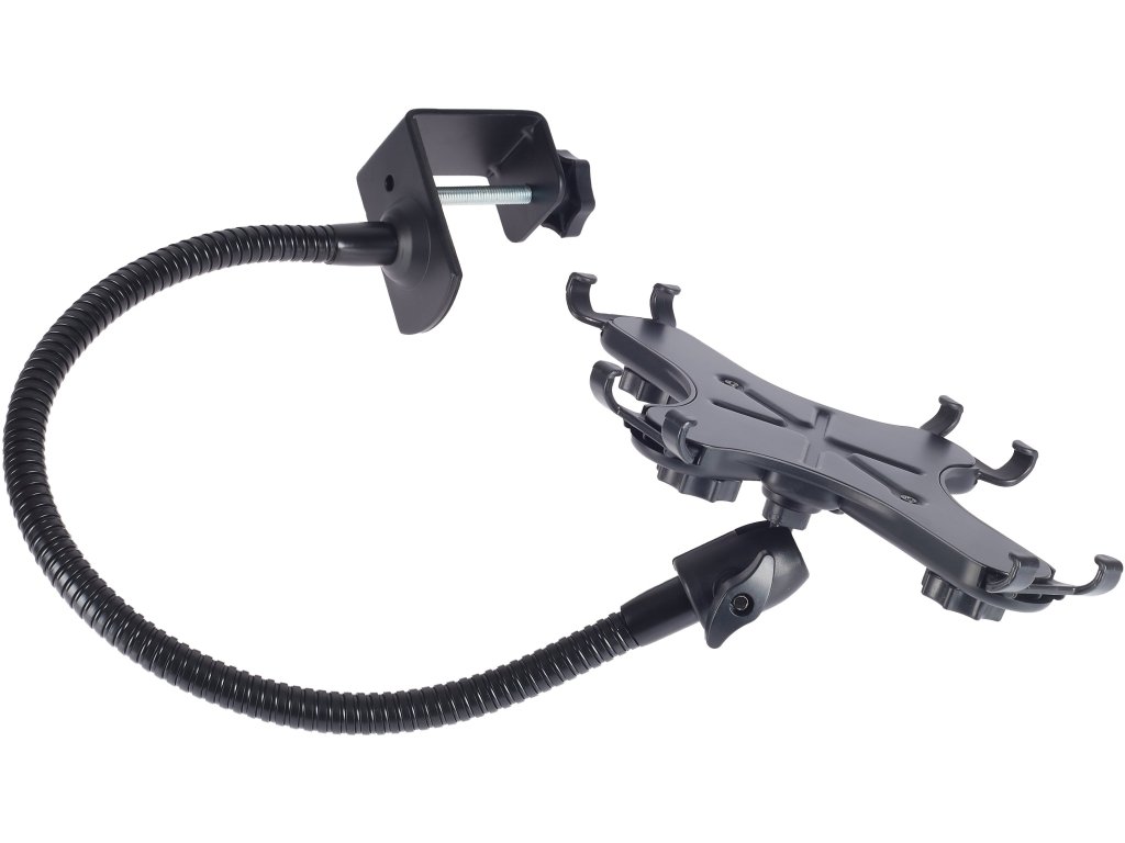 Uniwersalny uchwyt na tablet do mocowania na statywie mikrofonowym lub blacie o wysokości do 52 mm. Elastyczna konstrukcja pomieści tablety o przekątnej 8" -11" zarówno w pozycji poziomej, jak i pionowej (maks. wymiary 265 x 195 x 7,2 mm). Uchwyt jest przymocowany do gęsiej szyi o długości 58 cm, dzięki czemu można idealnie dopasować nachylenie tabletu do swoich potrzeb i preferencji. TAB100TC jest odpowiedni dla influencerów, vlogerów i Youtuberów, którzy wiedzą, że wysoka jakość obrazu i dźwięku to znacząca przewaga konkurencyjna.