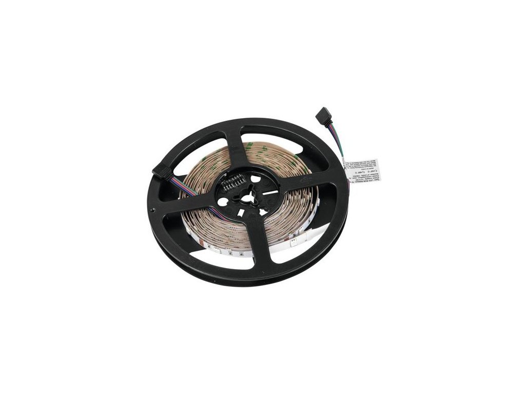 Elastyczna taśma LED do dekoracyjnego oświetlenia wnętrz. Taśma wyposażona jest w 150 diod LED, możliwość skrócenia na mniejsze segmenty. Za pomocą sterownika do taśm LED (50530555) można regulować jasność i szybkość zmian kolorów oraz uruchamiać 4 zintegrowane programy świecenia. Samoprzylepna tylna strona taśmy ułatwia instalację, możliwość użycia kleju lub wkrętów do trwałego montażu. Zasilanie 12V (zasilacz sieciowy 51402248 nie wchodzi w skład zestawu), dostarczane na plastikowej szpuli. Idealne oświetlenie pomieszczeń imprezowych, witryn sklepowych i gablot prezentacyjnych, zastosowań targowych itp. Możliwości zastosowania są praktycznie nieograniczone.