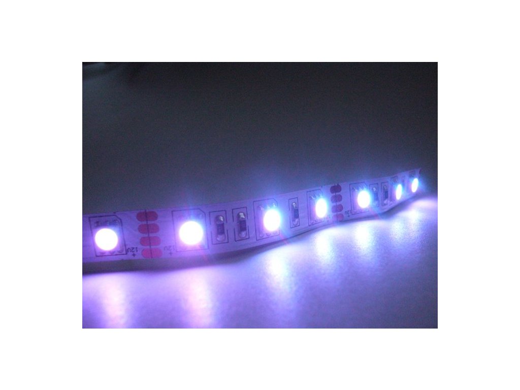 RGB (czerwony, zielony, niebieski), 12V, 60 SMD LED/m, moc 14,4W/m, szerokość paska 10mm. Bardzo popularny model paska świetlnego LED (strip) o wysokiej jasności i niezwykle prostym montażu. Najczęściej stosowany jako zamiennik świetlówek do oświetlenia szaf wnękowych, klatek schodowych itp. Jest to bardzo efektywne i popularne oświetlenie wnętrz samochodów, witryn sklepowych, gablot, klubów, obiektów rozrywkowych i sportowych oraz atrakcyjne oświetlenie towarów podczas różnych prezentacji. Dzięki niskiemu i bezpiecznemu napięciu 12V instalacja i użytkowanie są bardzo łatwe. Minimalna konserwacja i niska emisja ciepła taśmy LED znacznie zmniejszają koszty zużycia energii elektrycznej. Strip jest wyposażony w dwustronną taśmę 3M po stronie spodniej i można go dopasować do dowolnych kształtów łamanych i zaokrąglonych. Długa żywotność źródeł światła LED.