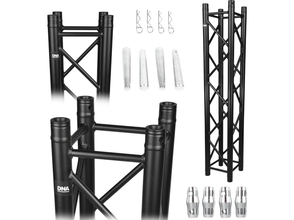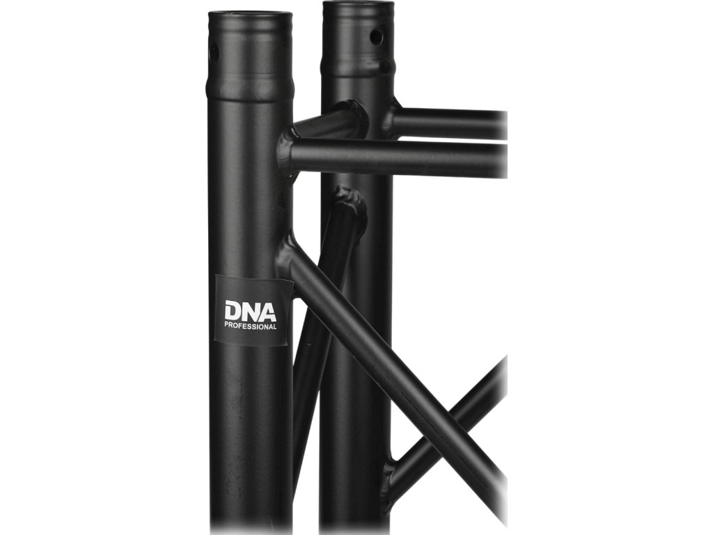 Konstrukcja DNA TB4 150 składa się z dwóch rodzajów rur w układzie kwadratowym. Rury główne o średnicy 50 mm i grubości 2 mm tworzą rdzeń nośny, podczas gdy rury wzmacniające o średnicy 20 mm i grubości 2 mm uzupełniają całą strukturę traversu. Konstrukcja wykonana z aluminium w kolorze czarnym zapewnia estetykę i wytrzymałość przy zachowaniu niskiej wagi.