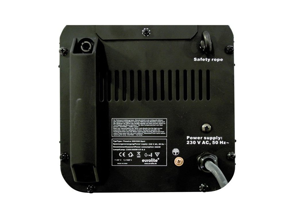 Wysokiej jakości reflektor punktowy sceniczny. Ogniskowa od 10° do 40°. W zestawie ramka na filtry kolorowe i siatka ochronna. Wykonanie Antihalo. Żarówka 230 V/300 W lub 500 W, trzonek GY 9,5.