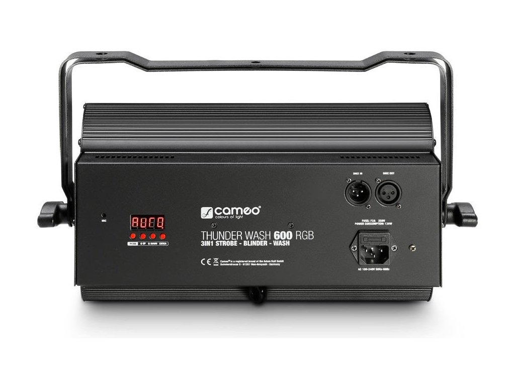 Thunder Wash 600 RGB jest dostarczany z 3-pinowymi złączami XLR dla wejścia i wyjścia DMX, 8 trybami DMX z dimmerem, częstotliwością i czasem trwania Flash, a także możliwością pracy jako Master, Slave lub Standalone. Do ręcznego sterowania służy czytelny wyświetlacz LED z przyciskami trybu, wejścia, góra i dół, a wbudowany mikrofon służy do sterowania dźwiękiem.