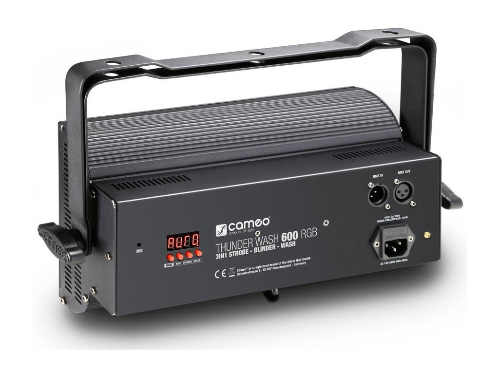 Thunder Wash 600 RGB to stroboskop, blinder i światło wash w jednym. Jest wyposażony w 648 diod RGB 0,2 W SMD LED o kącie wiązki 80 ° i ma kompaktową czarną metalową obudowę z uniwersalnym uchwytem montażowym.