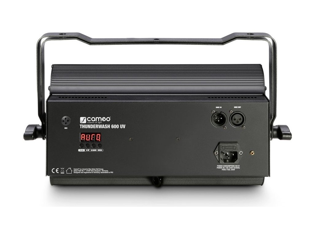 Nawigacja po menu i konfiguracja są dziecinnie proste dzięki jasnemu wyświetlaczowi LED z przyciskami trybu, wejścia, góra i dół. Thunder Wash 600 UV jest dostarczany w wytrzymałej, całkowicie metalowej obudowie z 3-pinowymi złączami zasilania DMX i IEC oraz uniwersalnym uchwytem montażowym.